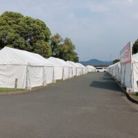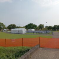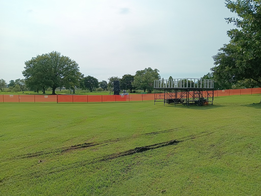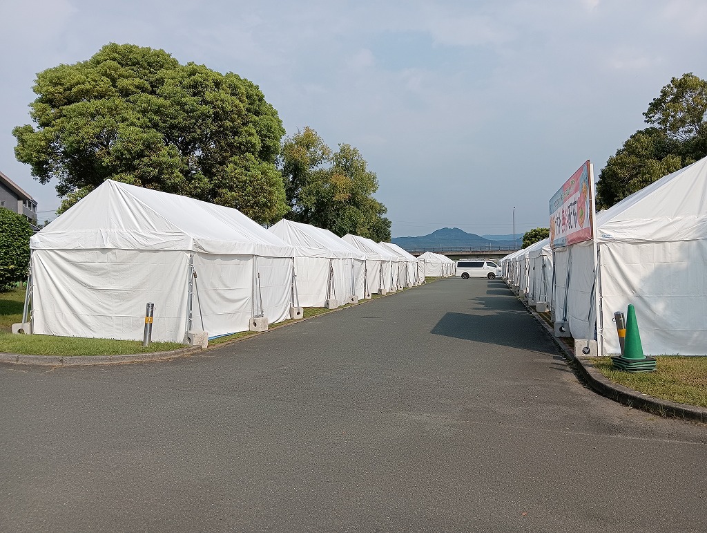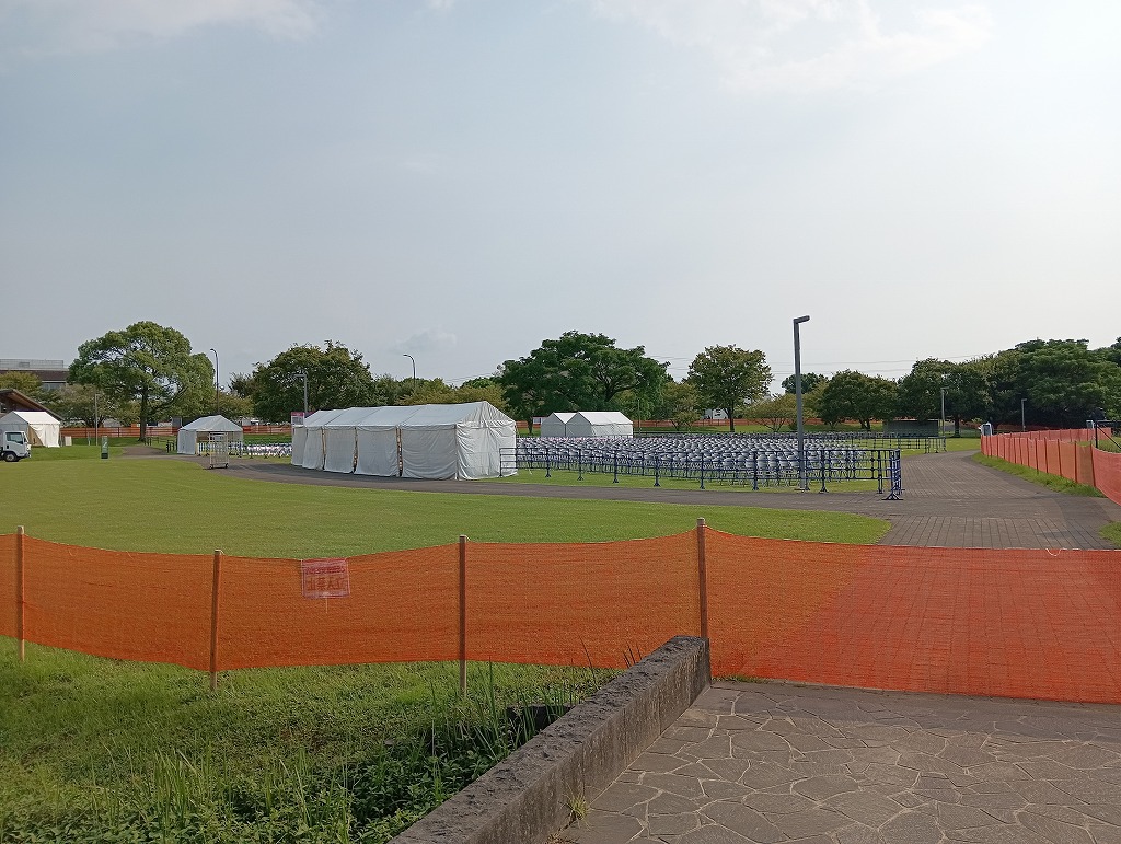 こんにちは、水前寺江津湖公園です。 いよいよ明日、江津湖花火大会です!会場は明日に向けて準備が大詰めを迎えています。