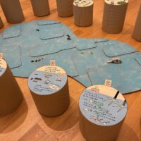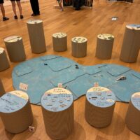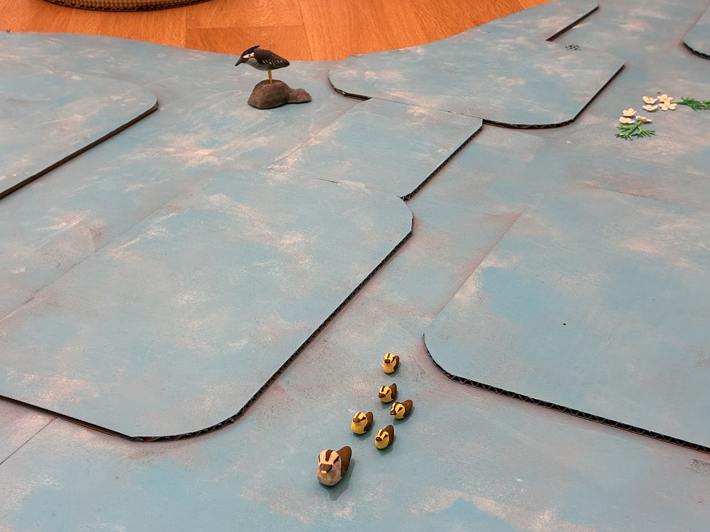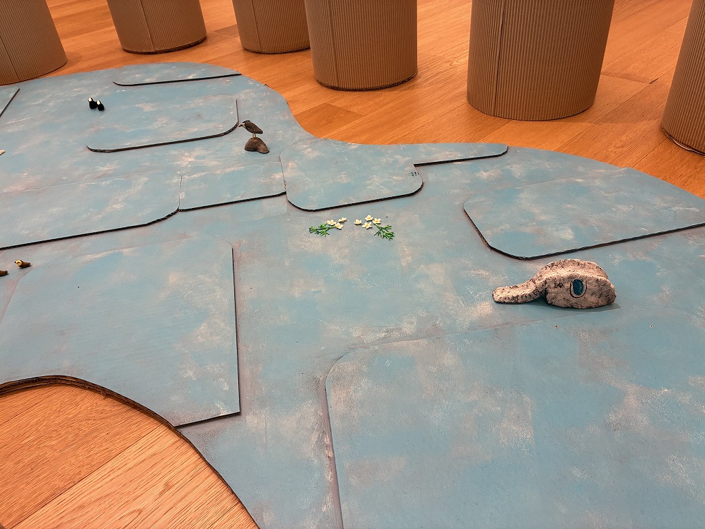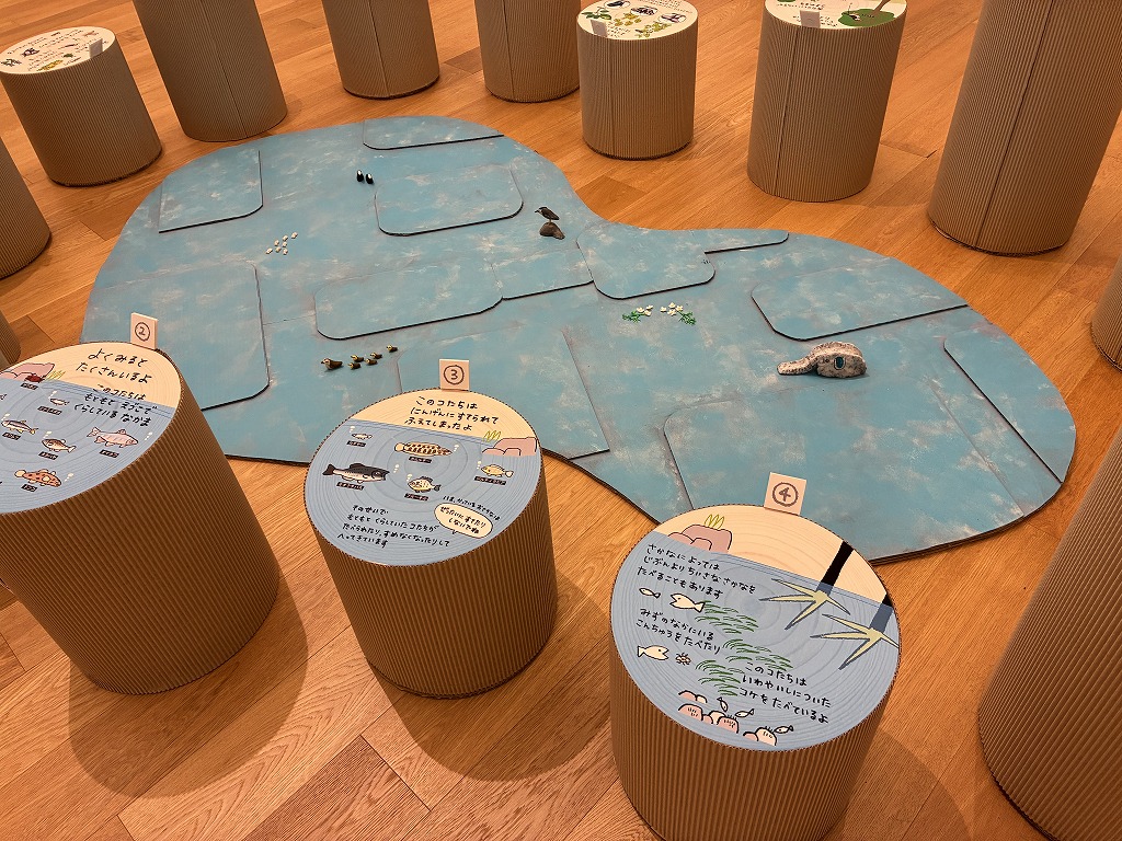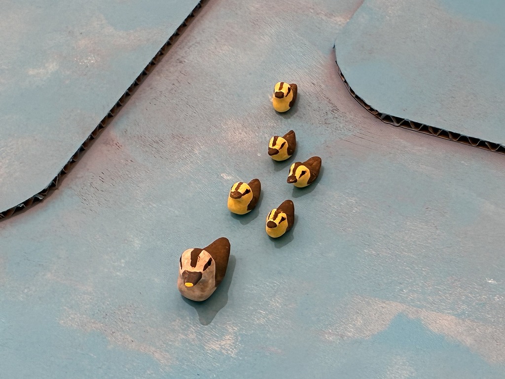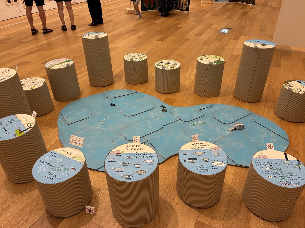 かわいいカルガモ親子やササゴイ、ゾウさんプールのすべりだいの模型もあります。ここでは、江津湖の自然の物語を順に追って見れる絵本のような作品になっています。とても興味深く見させていただきました。詳しい内容は、実際に作品を見ていただけたらと思います。