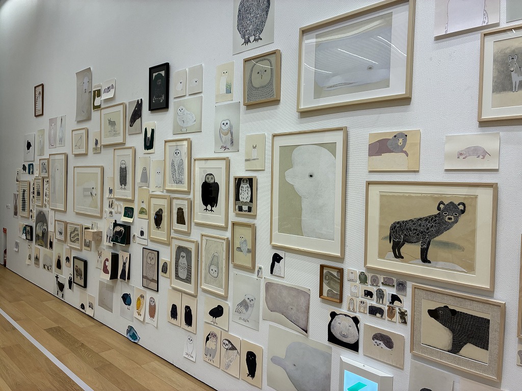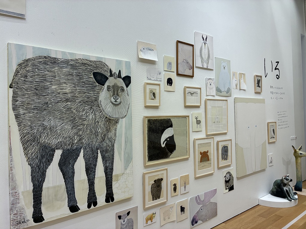 不知火美術館では、コーダさんとアドさんが共同で作品を展示されています。アドさんの作品は初めてでしたが、ネコやフクロウなどなど、いろいろなとてもかわいい動物たちの作品を多く展示してありました。コーダさんは、熊本市動植物園の動物たちの看板を作成されていることでも有名です。その動物たちの作品も展示してありました。