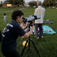 今日は晴れの天気で雲が少し出た時間もありましたが、とてもきれいに月を観察できました。大きな望遠鏡を使っての観察でしたので、月がはっきり見えます。望遠鏡をのぞかれた方々はとても感動されていました。広木地区は空が広く見渡せるので、月や星空の観察にはうってつけです。今の時期は江津湖で夜の星空の観察もいいかもしれませんね♪