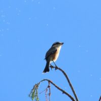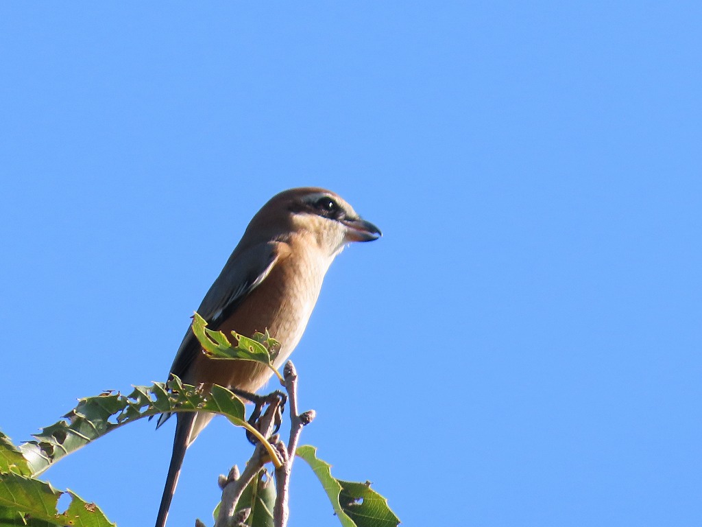 秋口にはよく木のてっぺんで高鳴きしているのを見かけます。「モズの高鳴き75日」ということわざも有名です。また、捕った獲物を枝などに刺す、「モズの早贄」も有名です。こうしてみると、昔から人々に馴染み深い小鳥のようですね。