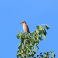園内ではモズをよく見かけます。熊本県では留鳥となっており年中見かける小鳥ですが、江津湖では真夏よりも涼しくなる秋ごろからよく見かけるようになる印象です。