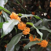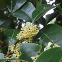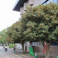近くを歩いてみるととてもいい香りがします。キンモクセイは濃いオレンジ色の花、ウスギモクセイは薄い黄色の花です。江津湖ではいろいろな場所に植えられており、秋の香りを感じさせてくれます。