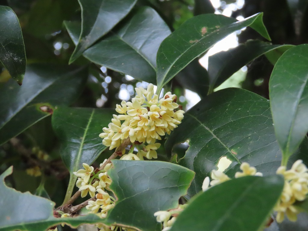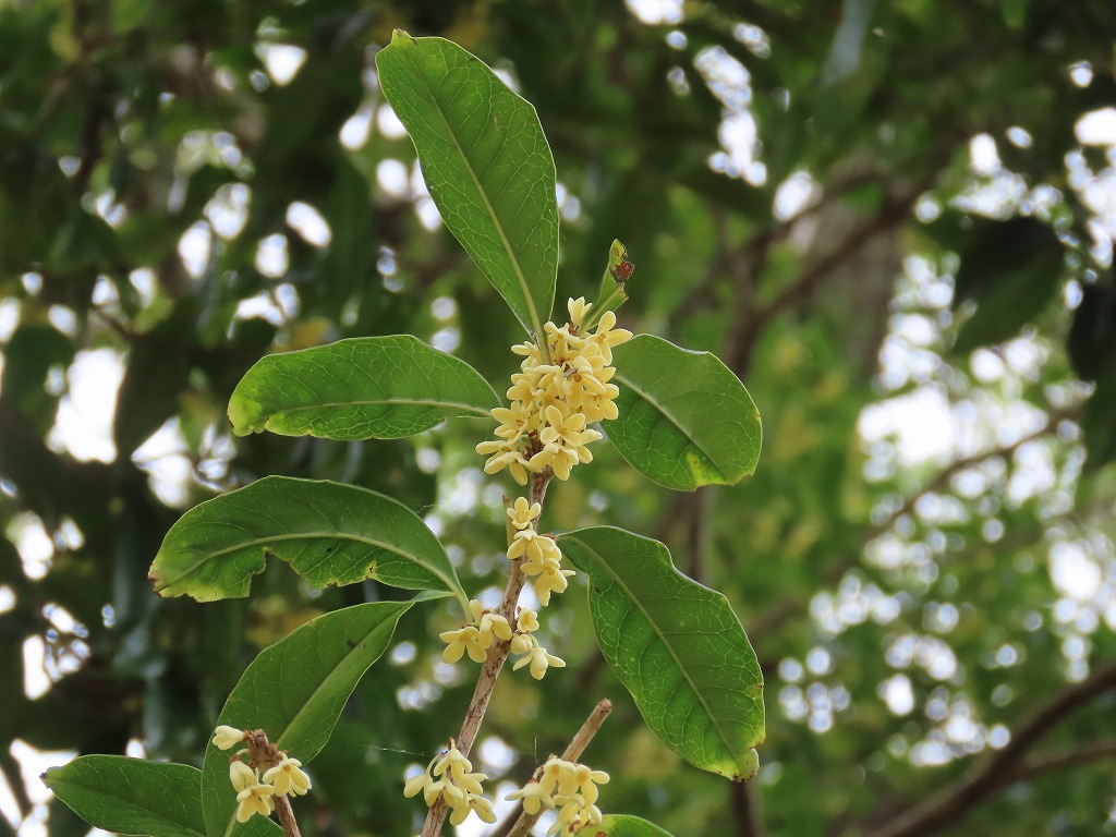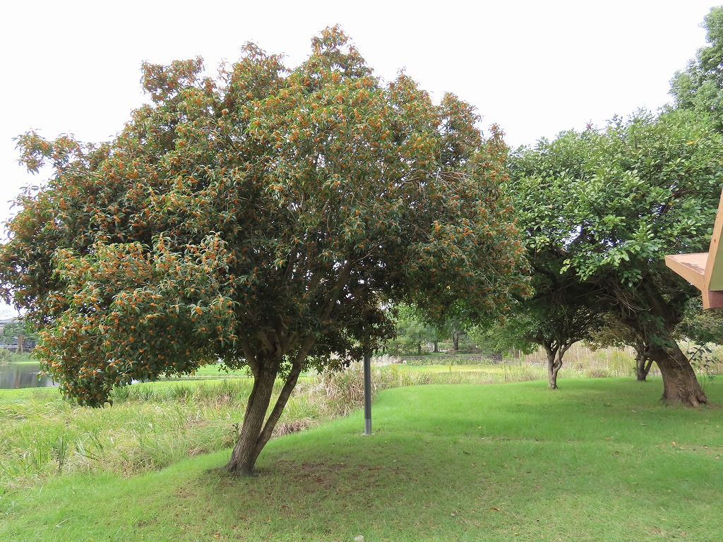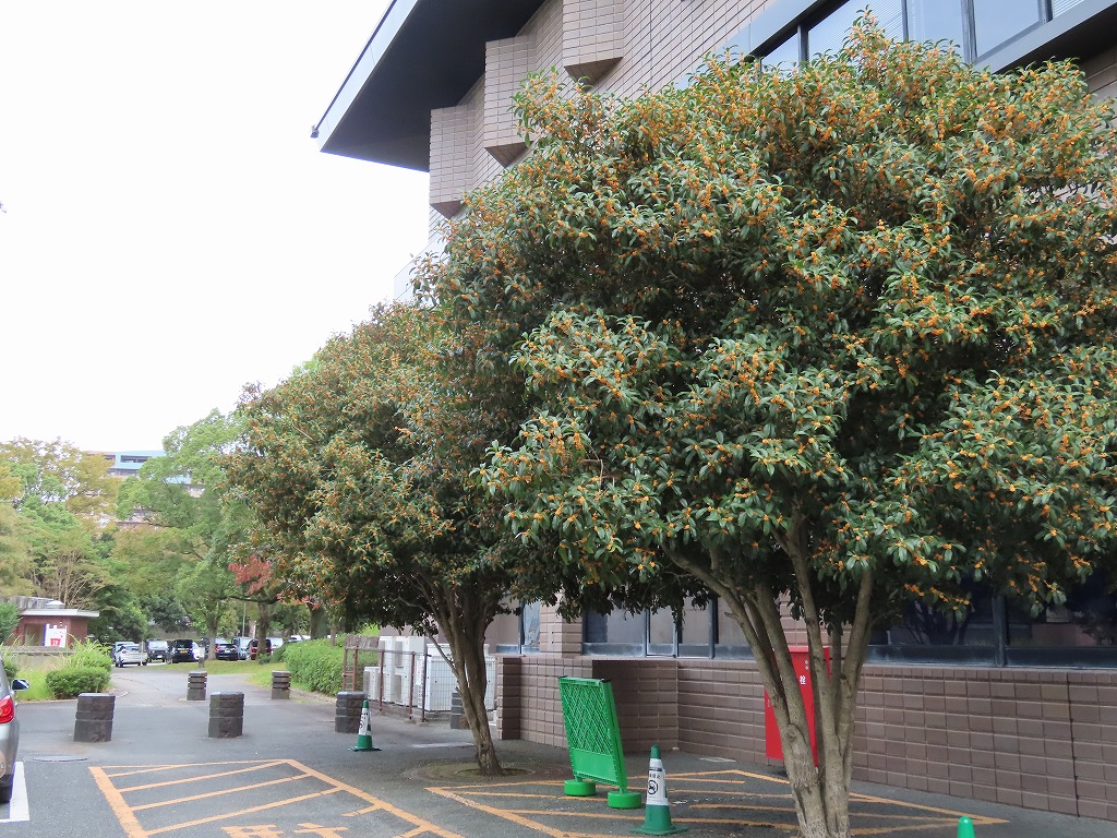 こんにちは、水前寺江津湖公園です。 だいぶ涼しくなりましたが、そのためでしょうか、園内のキンモクセイやウスギモクセイの花が急に咲き始めました。