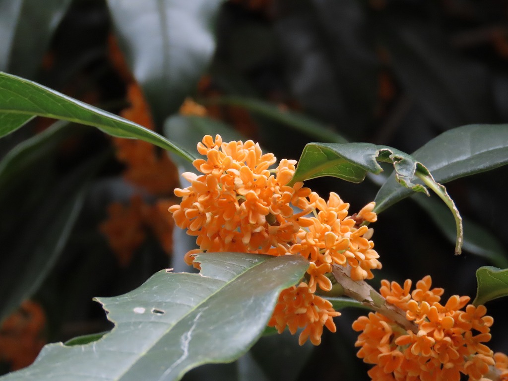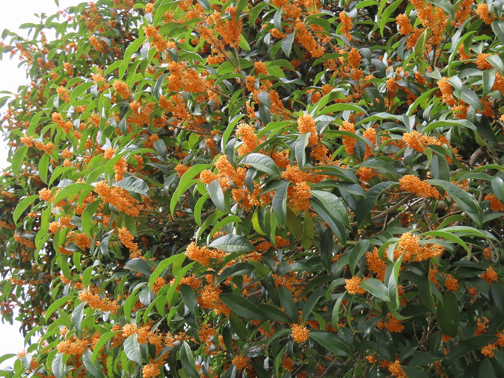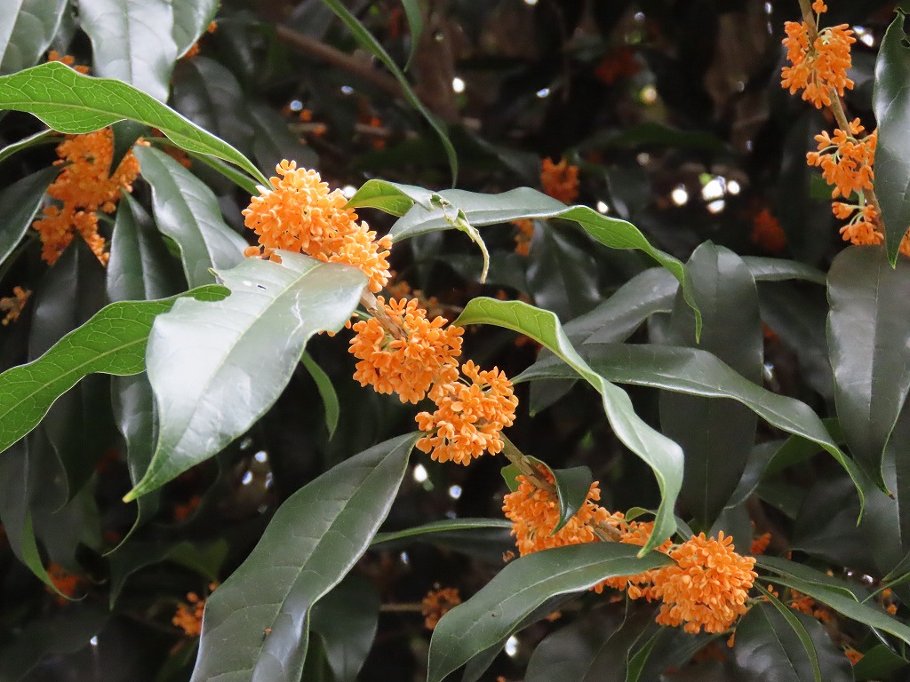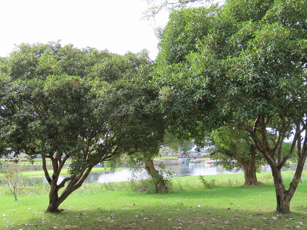 こんにちは、水前寺江津湖公園です。 だいぶ涼しくなりましたが、そのためでしょうか、園内のキンモクセイやウスギモクセイの花が急に咲き始めました。
