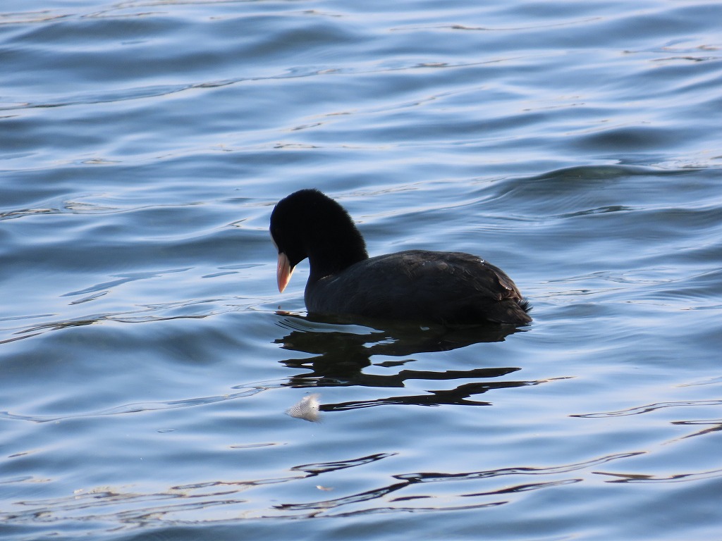 江津湖では、最も多くみられる野鳥の一つです。カモたちと一緒に泳いでいますのでカモの仲間と思われがちですが、クイナの仲間となっています。黒い体に白いくちばしが特徴の分かりやすい野鳥です。数も多いので、すぐに見つけることができると思います。