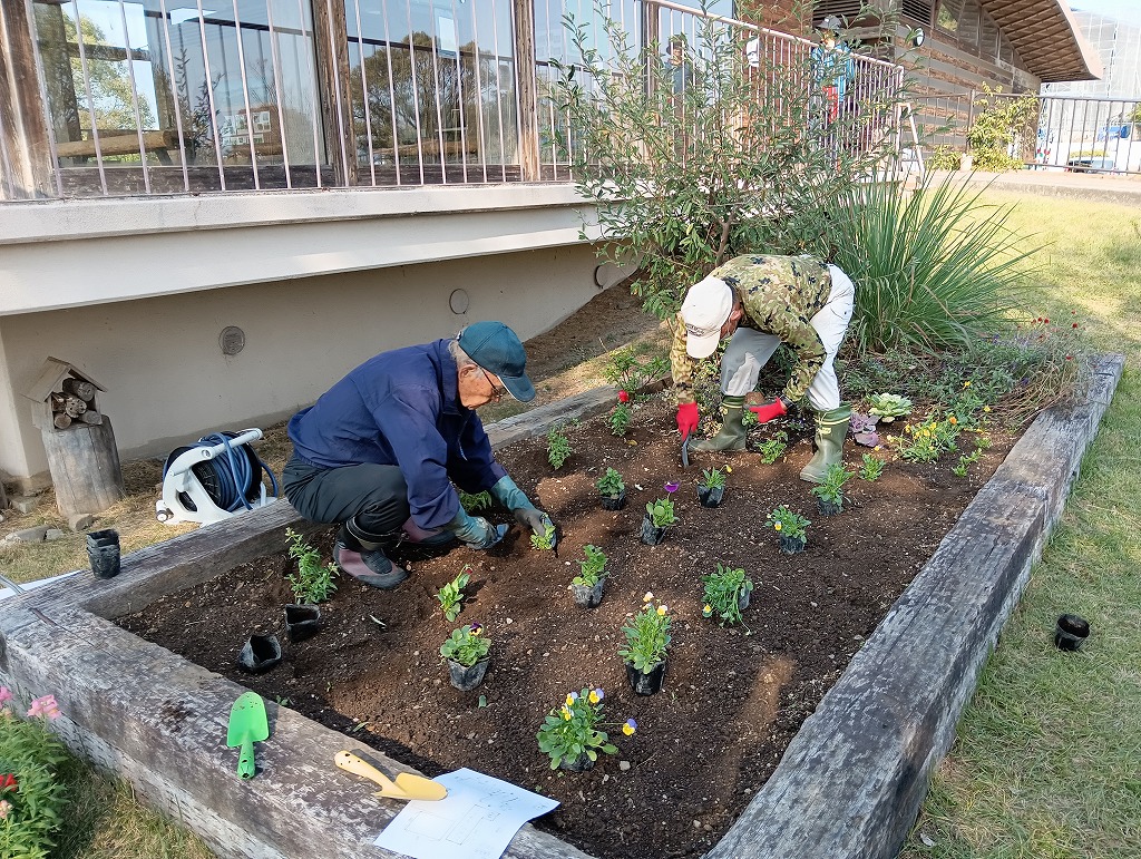 パンジー、ビオラ、ノースポール、キンギョソウなど、寒さに強い植物たちを植えました。お手伝いいただいた皆様、ありがとうございました。きれいに咲く花を楽しみにしていてください。