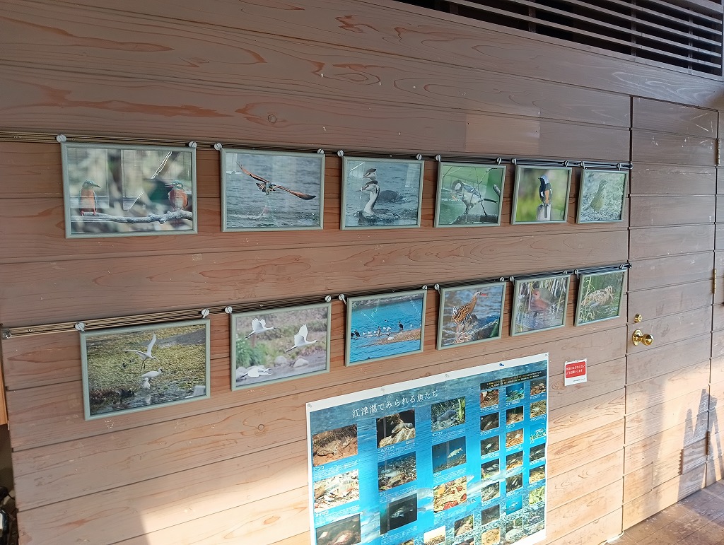園内は多くの野鳥たちでにぎわってきました。広木地区サービスセンター休憩室では、江津湖で見かける野鳥の写真を展示しています。