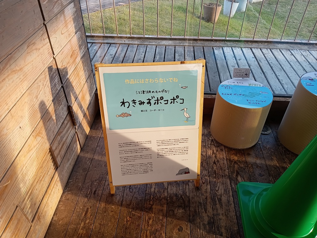 また同時に、イラストレーターのコーダヨーコさんの作品も展示しています。作品名は「わきみずポコポコ〜江津湖のものがたり〜」です。江津湖に暮らす様々ないきものたちのいのちの繋がりを表現している作品となっています。