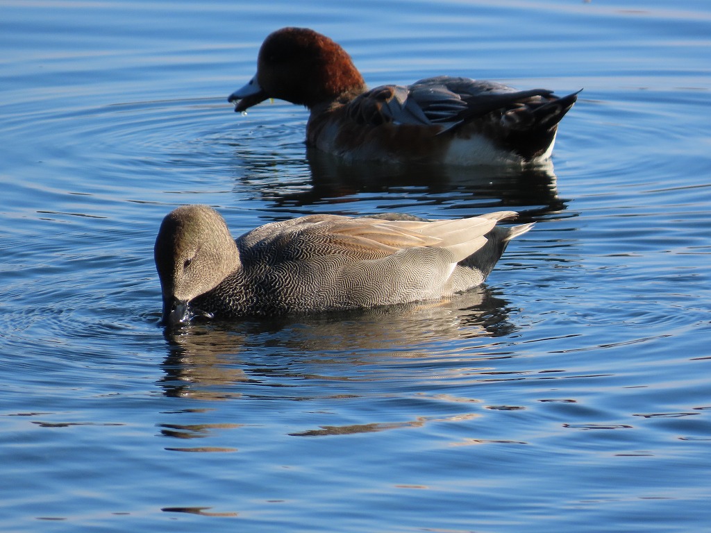 オカヨシガモは、遠くから見ると灰色一色のちょっと地味なカモです。しかしじっくり観察してみると、模様が細かくとてもきれいな体色をしています。江津湖ではよく見かけるカモです。カモの群れの中を探してみると、見つけることができると思います。
