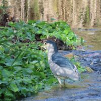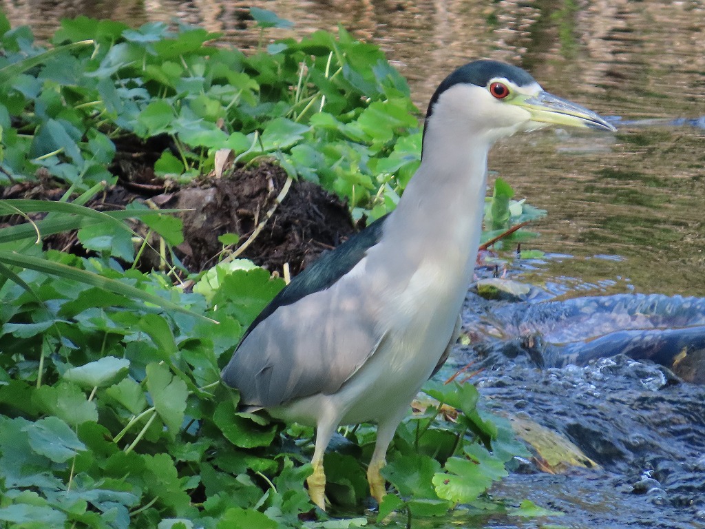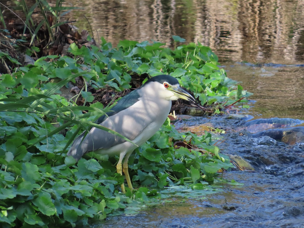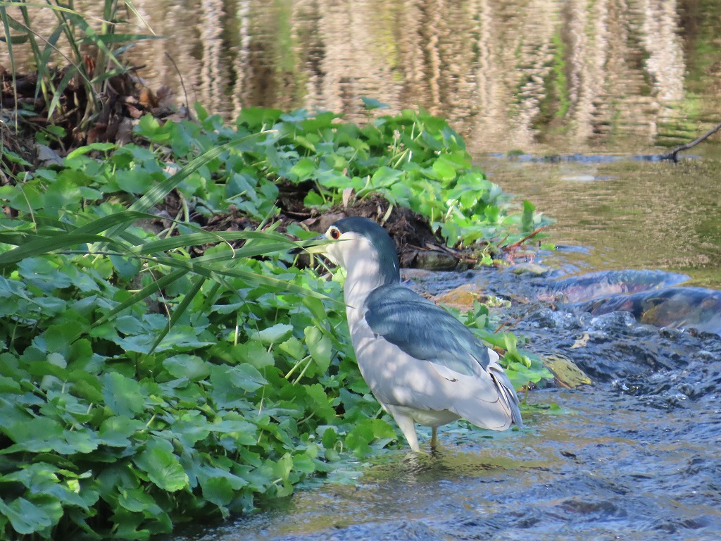 園内でゴイサギを見かけました。サギの仲間で、よく見かける白いサギとは少し違い、ずんぐりとした容姿をしています。