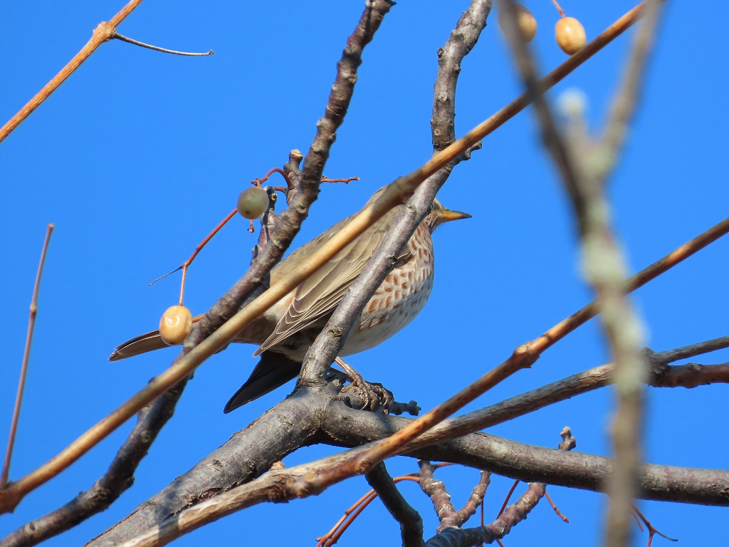 園内でようやくツグミの写真が撮れました。