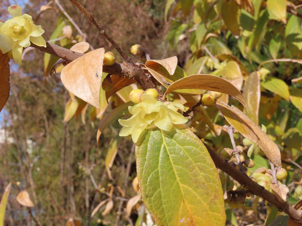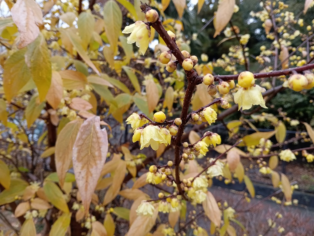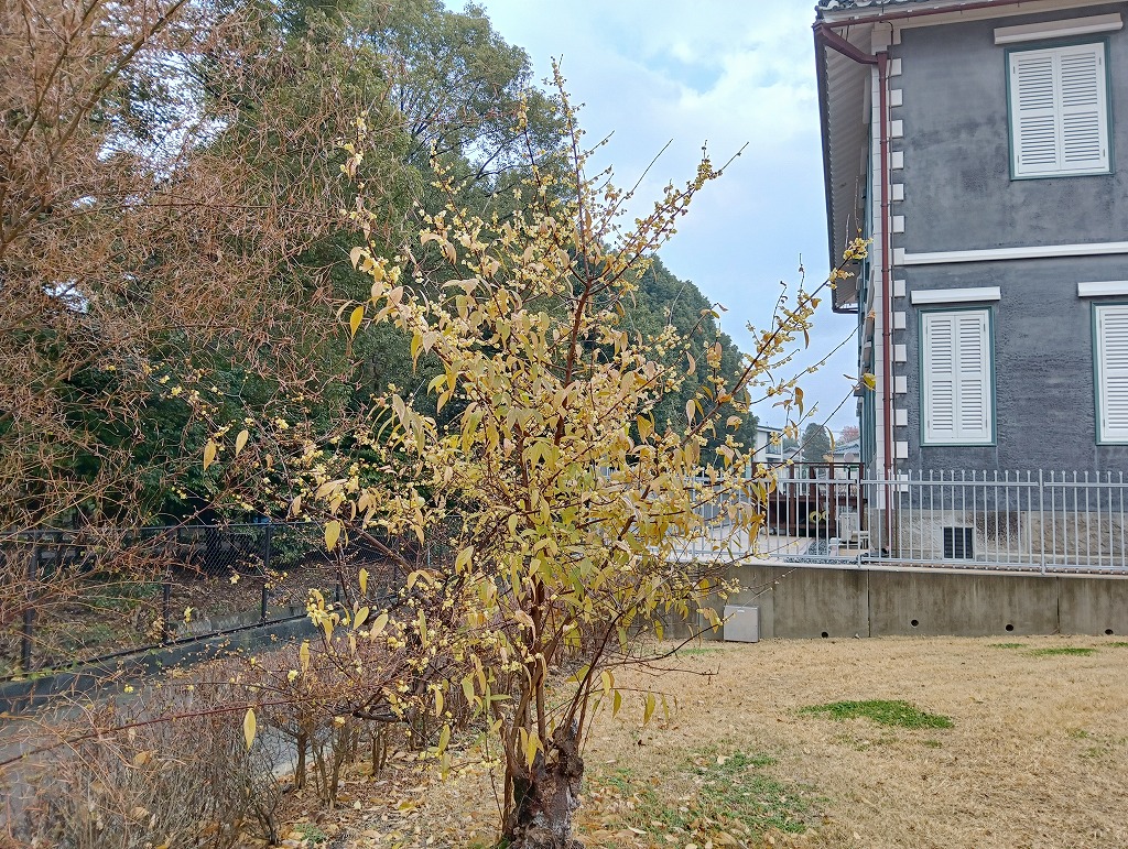 水前寺江津湖公園の水前寺地区、ジェーンズ邸の横にあるロウバイの花が咲いていました。