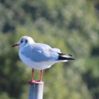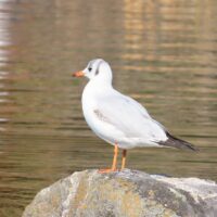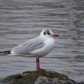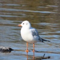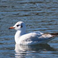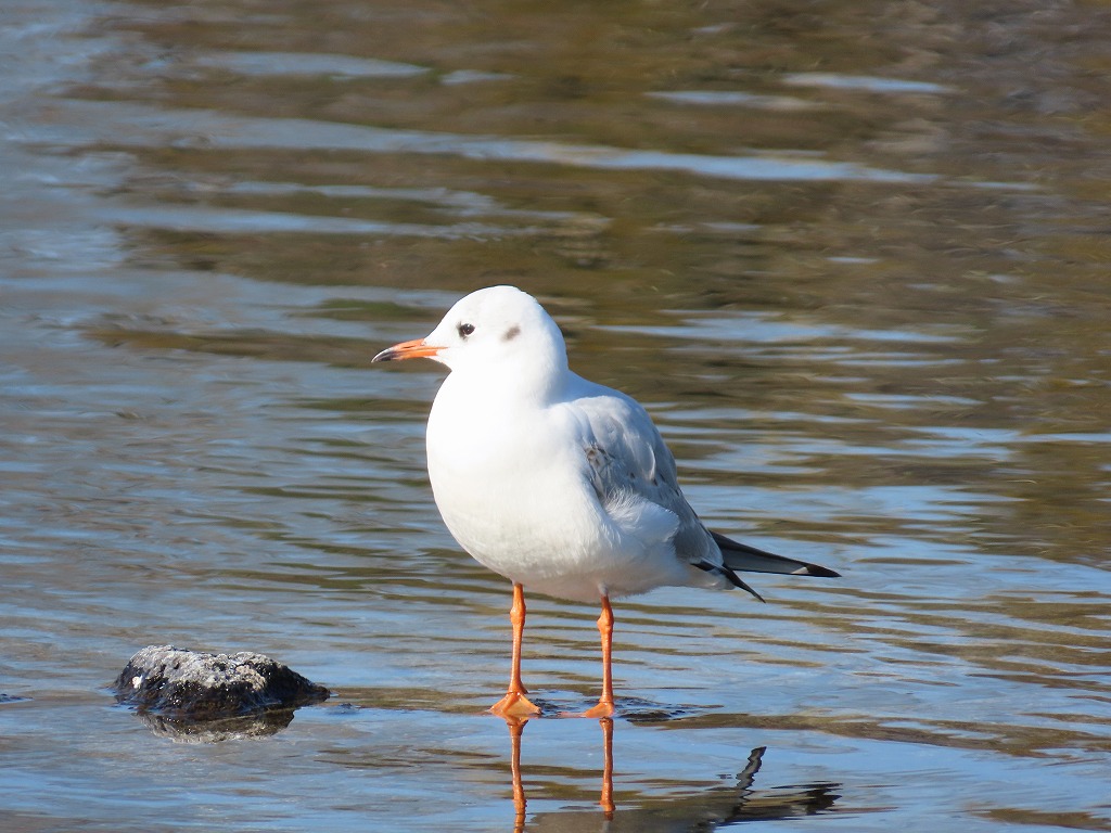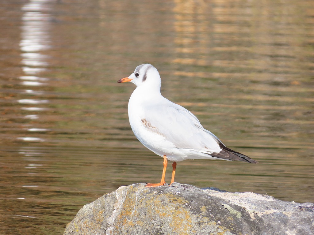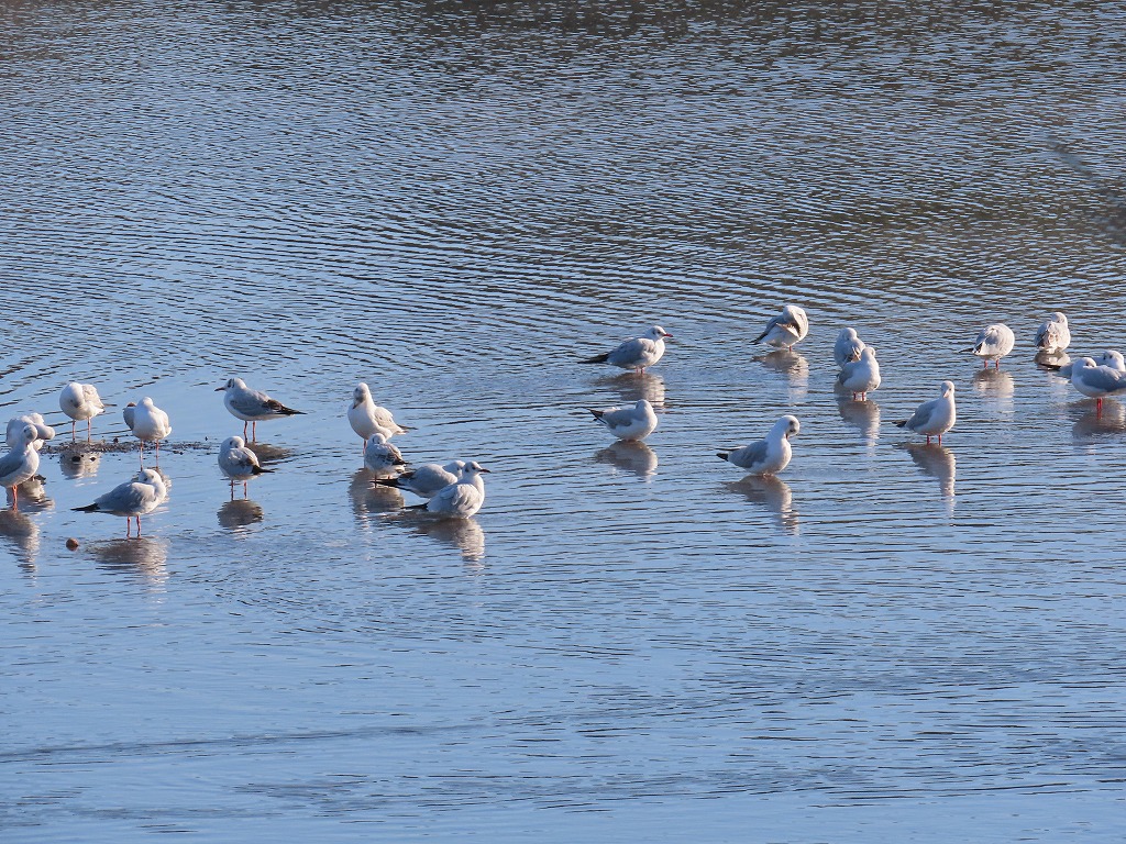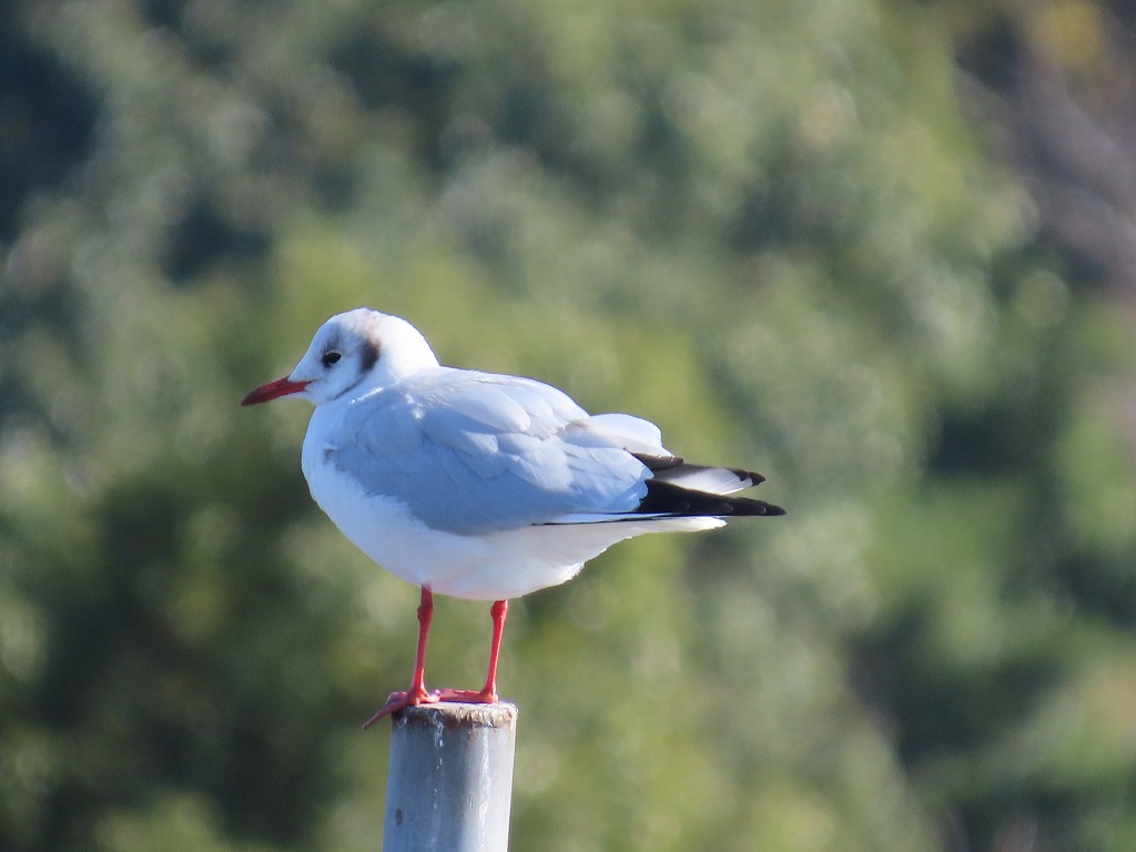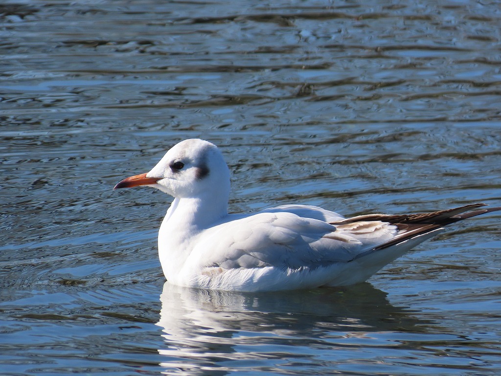 江津湖では毎年観察できる小型のカモメの仲間です。ここ数年、数が多くありませんでしたが、今季はとても多くのユリカモメが江津湖にやってきています。人慣れしているのでしょうか、あまり逃げない印象です。顔に黒い斑紋があるのが特徴で、白い体できれいなカモメです。
