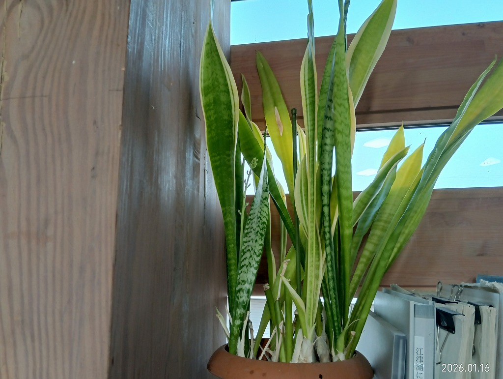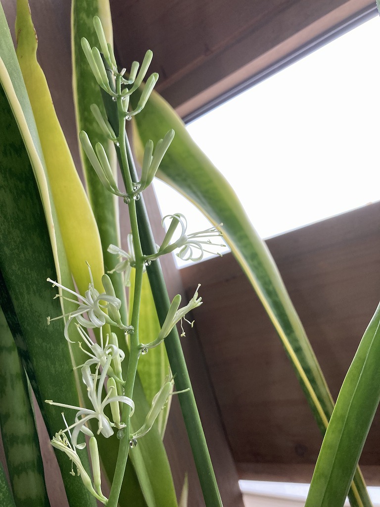 管理棟サービスセンターの中に、古いサンセベリアの鉢があります。 部屋の隅で目立つことなく、空気を浄化してくれています。 ふと目をやると、今年もつぼみを付けてくれました。 数年前からのことです。