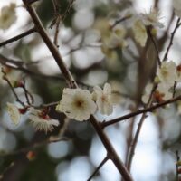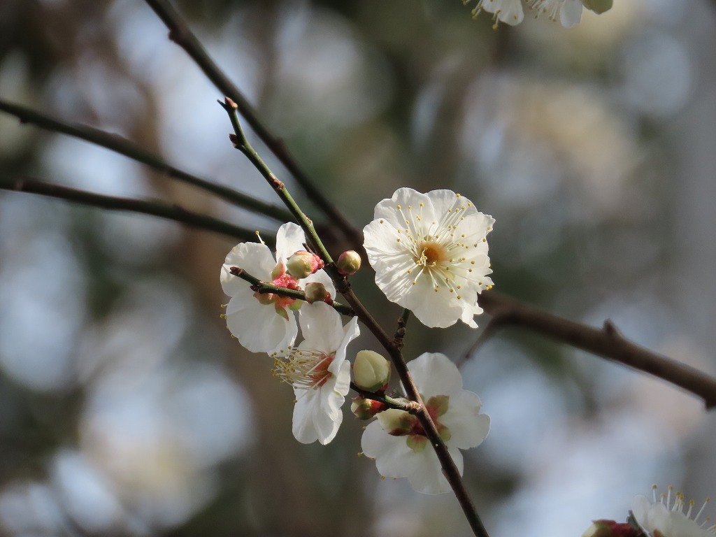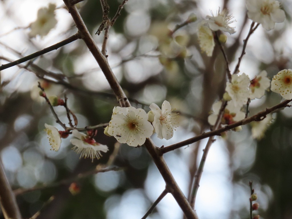 園内のウメの木を見てみると、早いところでウメの花が咲き始めている場所がありました。