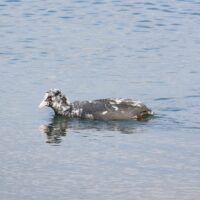 こんにちは、水前寺江津湖公園です。 園内ではオオバンをとても多く見かけます。注意深く観察してみると、その中に一部羽が白化した個体を見かけました。オオバンの部分白化個体です。この個体は1月にも見かけています。