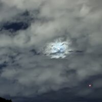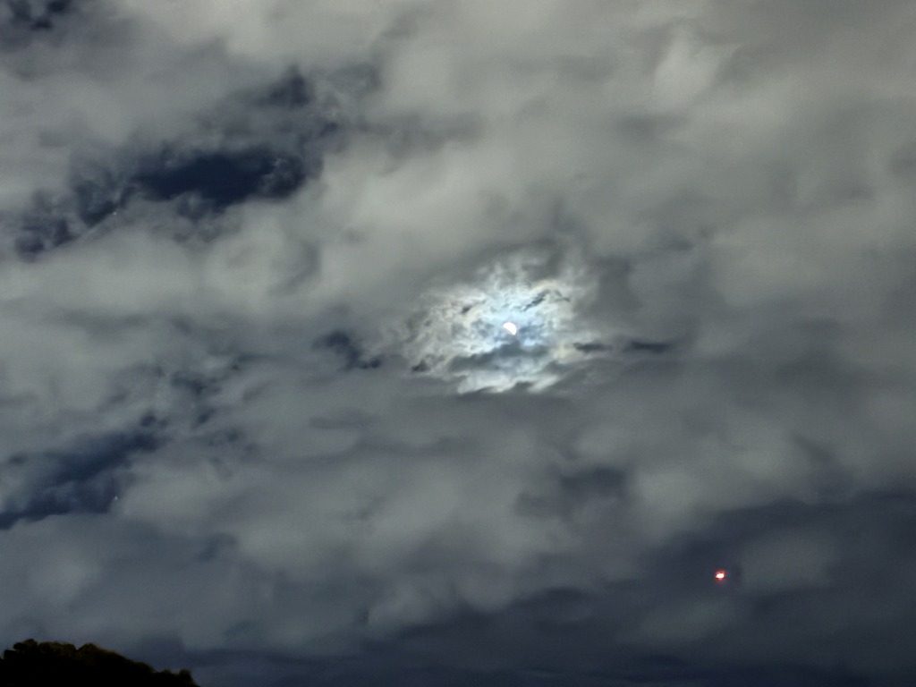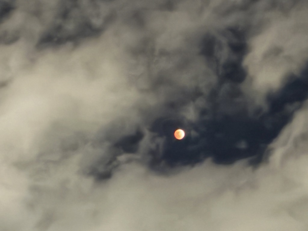 はじめのうちは雲が多く、月自体なかなか見ることができませんでした。ときどき雲の隙間から月が出てくる感じです。