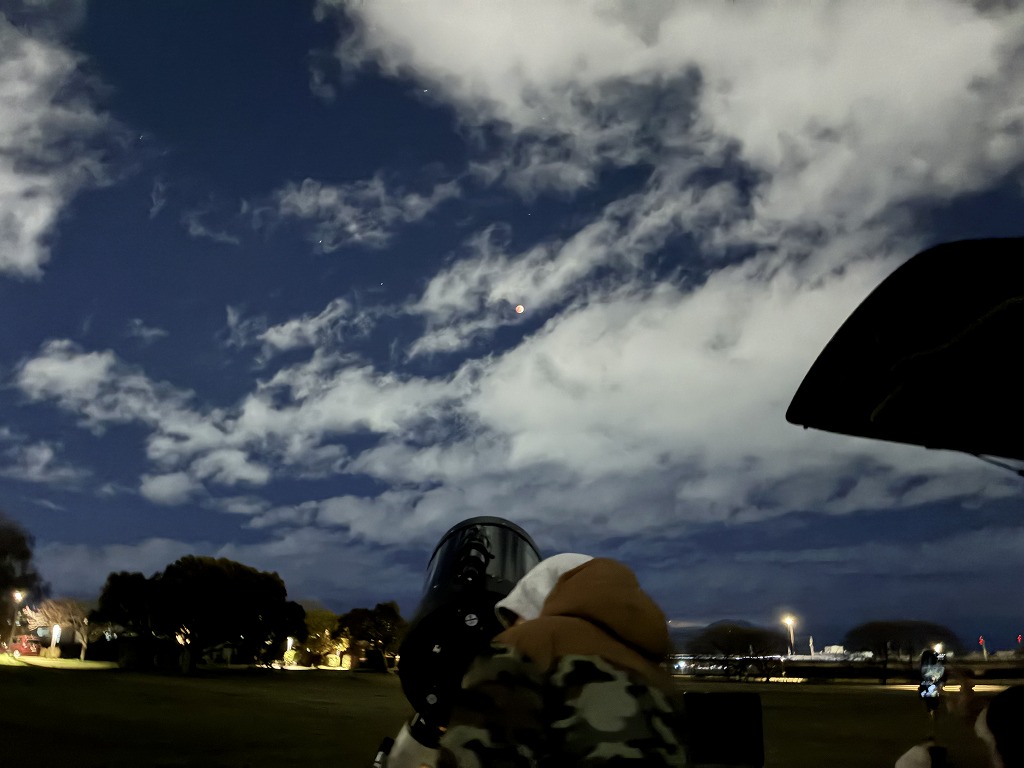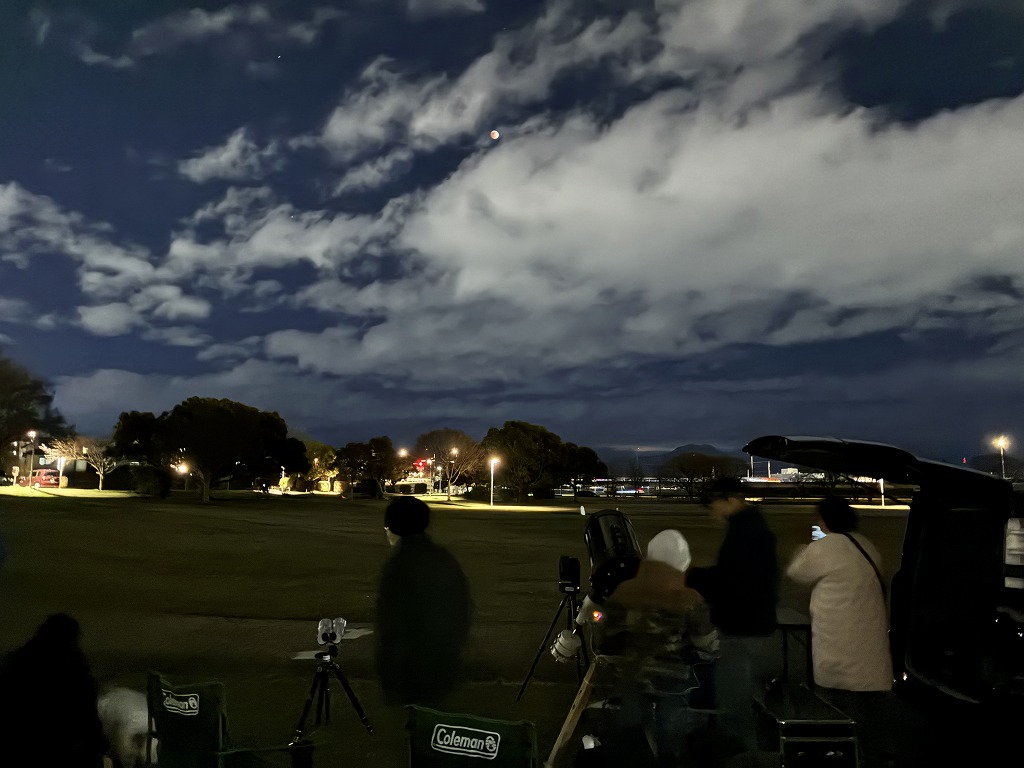 昨日の夜、熊本県内では皆既月食を観察できました。公園の主催のイベントではありませんが、広木地区で皆既月食の観察会がありました。「九州の星を守る会」主催のイベントです。少しお邪魔させていただきました。
