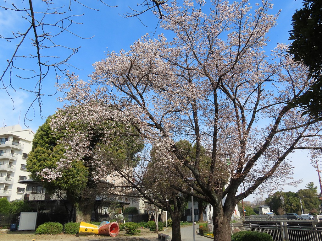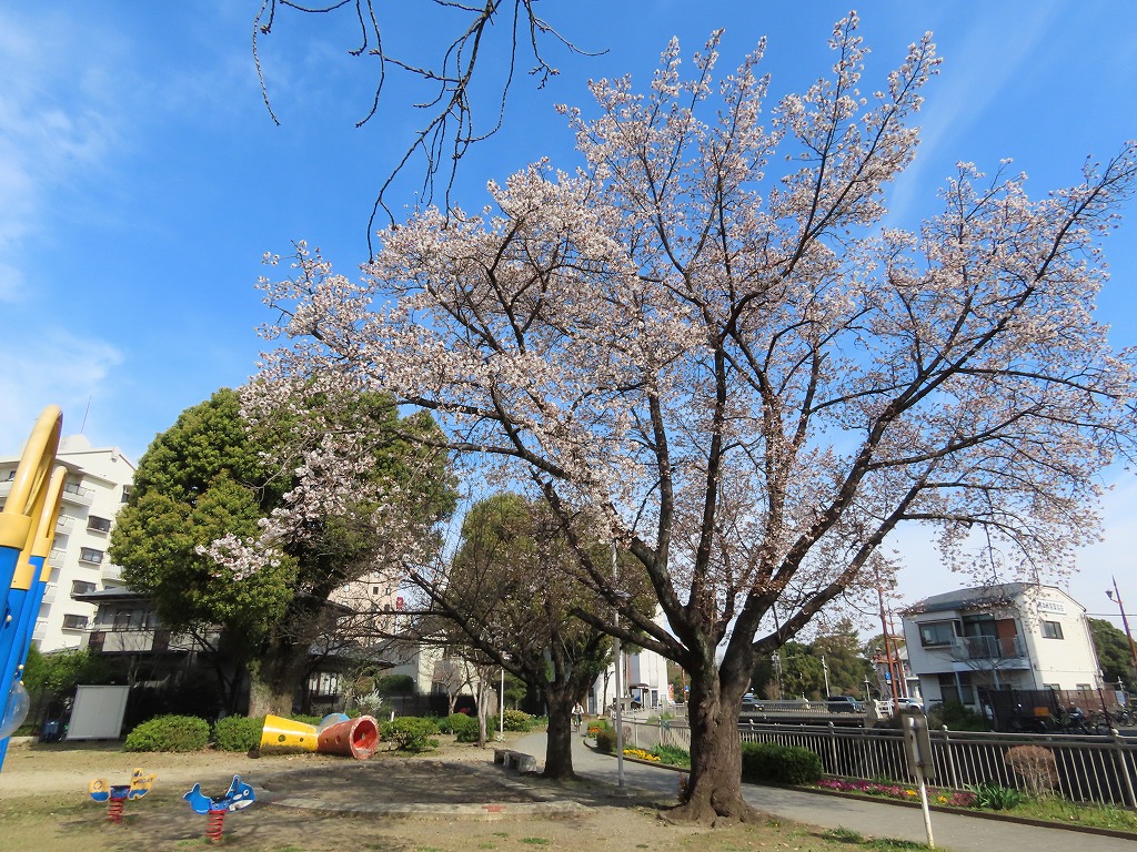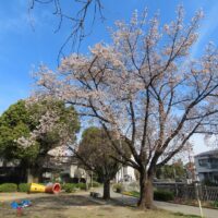 こんにちは、水前寺江津湖公園です。 暖かい春の陽気が続いています。水前寺地区の児童公園のサクラが、気付けばたくさん花開いていました。