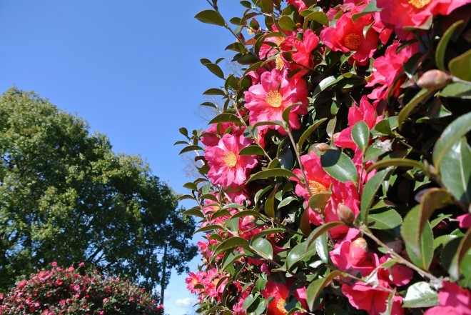童謡「たき火」の一節ですが、ちょうどたき火の恋しくなる寒い季節が、サザンカの咲く季節です。