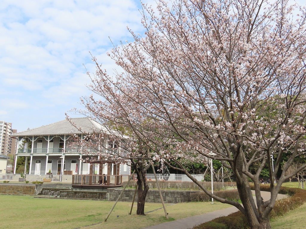 こんにちは、水前寺江津湖公園です。 園内のサクラがだいぶ咲き始めています。