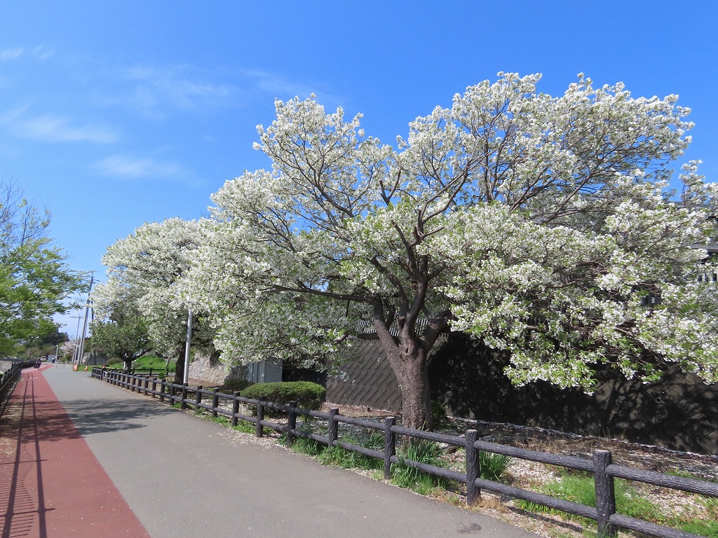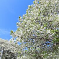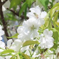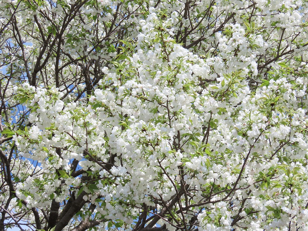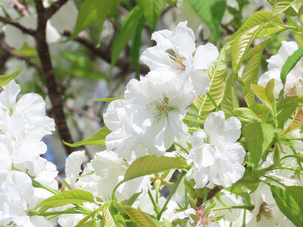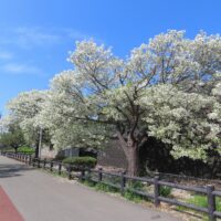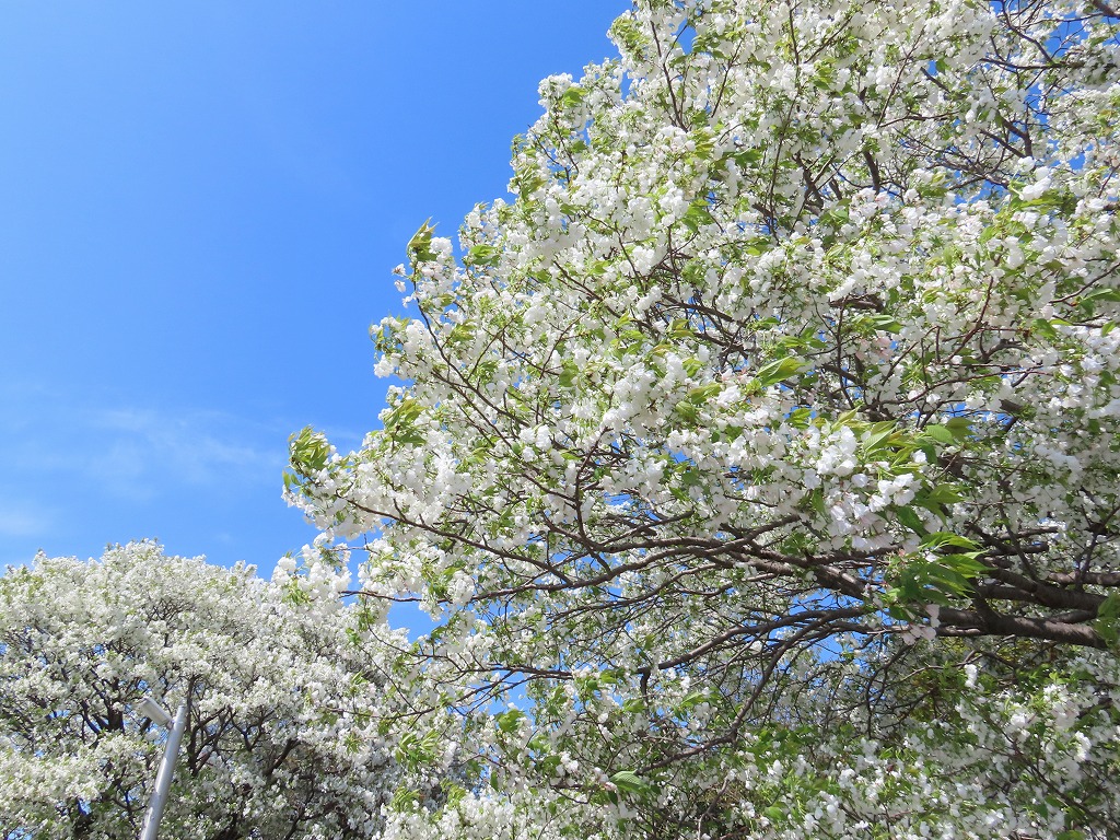 チハラザクラはソメイヨシノとは違い、透き通った白い花の色をしています。今は2本のチハラザクラを見ることができます。最近雨風が強く、見頃の時期を過ぎるのも早いかもしれません。興味のある方は早めの観察をおすすめします。