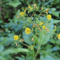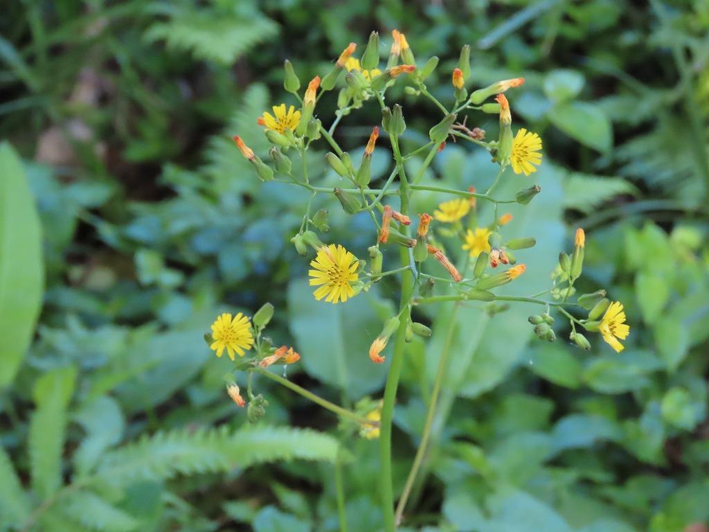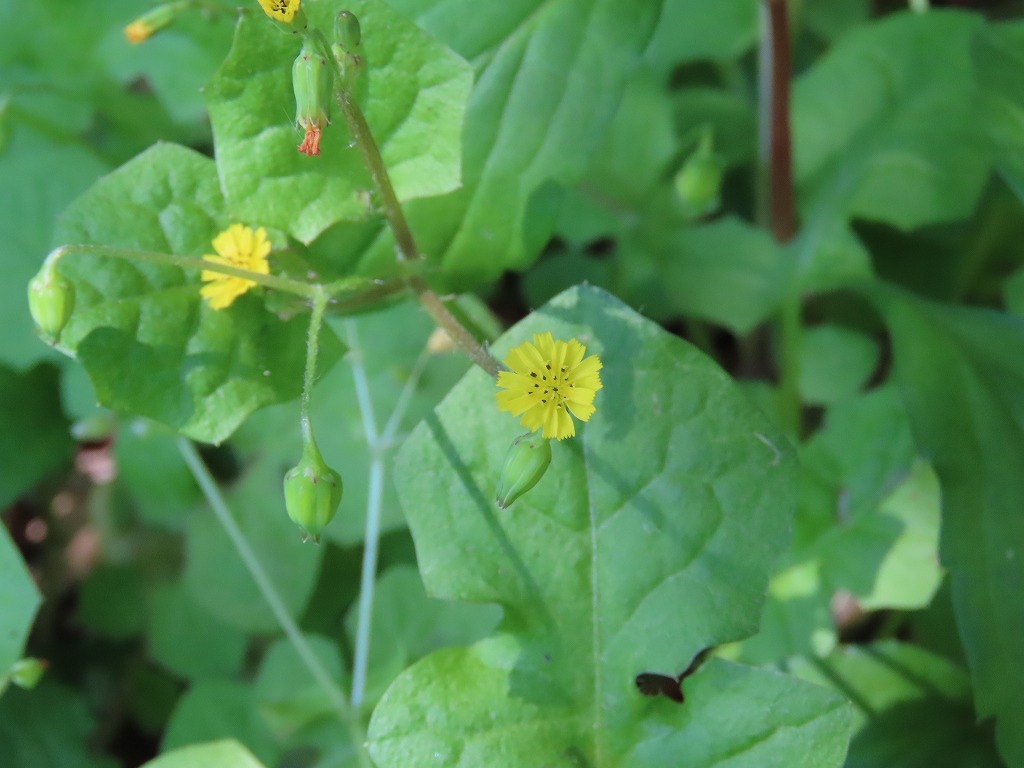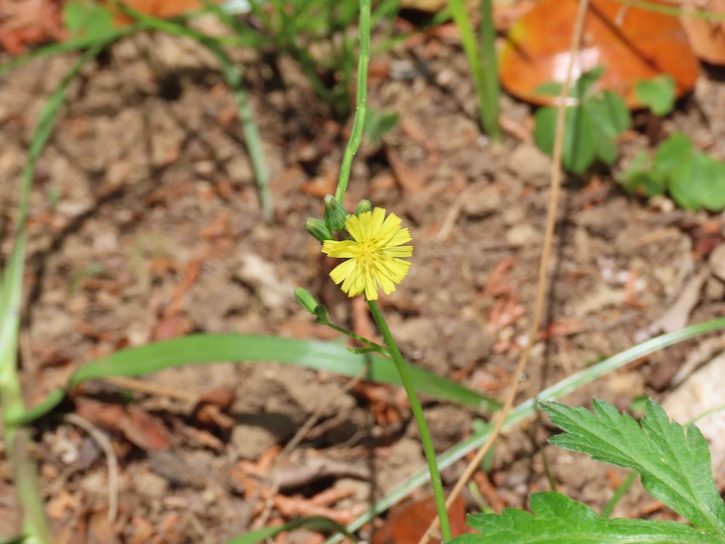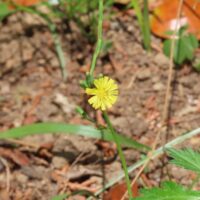 ヤブタビラコです。園内ではよく見かける植物です。ヤブタビラコの花はオニタビラコの花に似ていますが、ヤブタビラコはあまり立ち上がらないので、そこで区別できます。