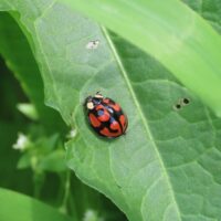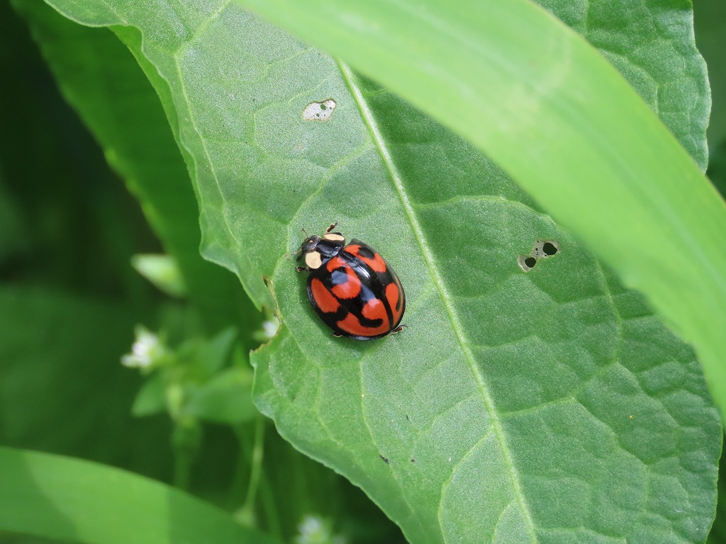 園内でカメノコテントウを見かけました。クルミハムシの幼虫を食べるため、江津湖ではよくオニグルミの木で見かけます。