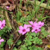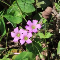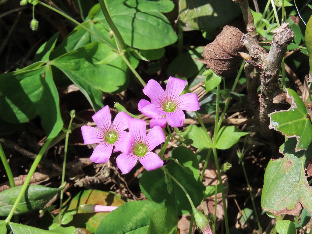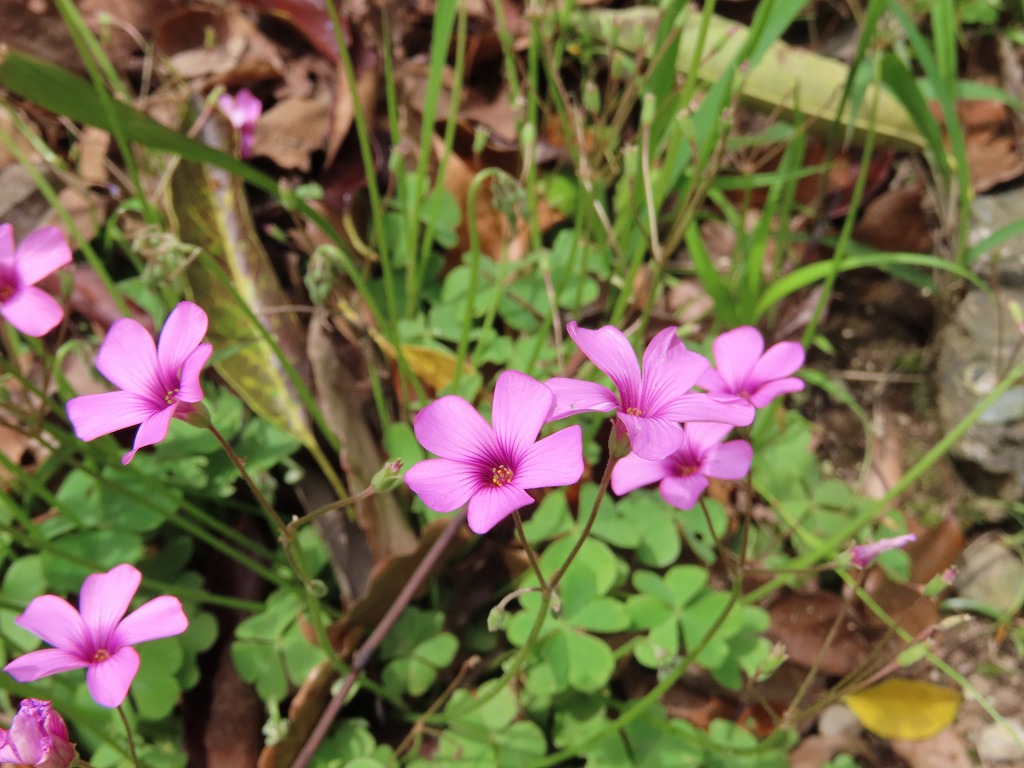 紫色のカタバミです。似ていますが、花の内側の色で区別できそうです。濃い色をしている方がイモカタバミとなります。