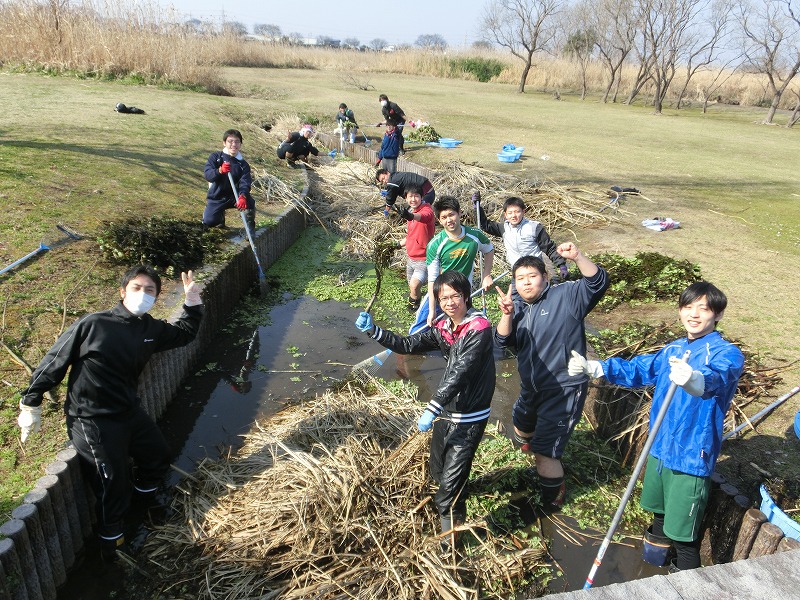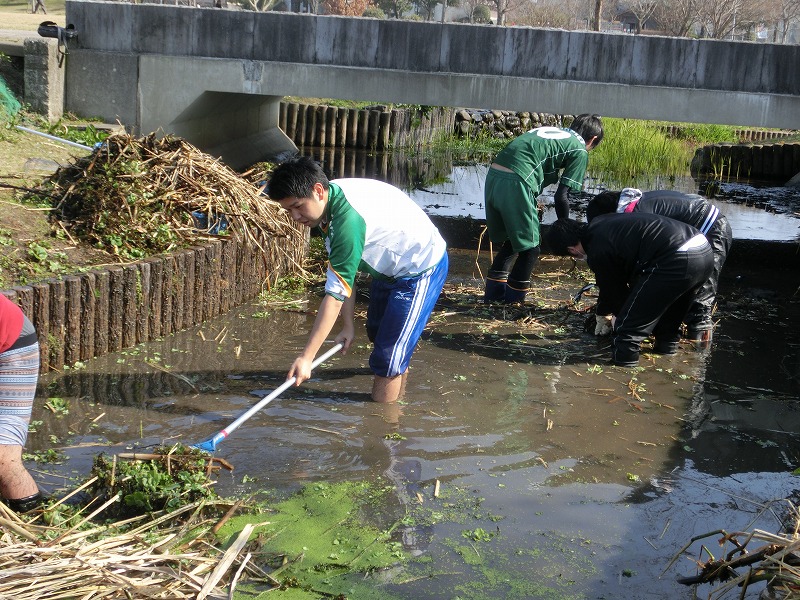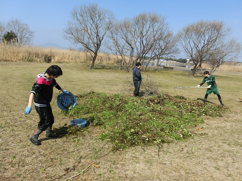 こんにちは、水前寺江津湖公園です。昨日2/23の日曜日に、学生団体の「なんさんする会」のボランティア清掃活動として、水路の水草清掃活動が行われました♪