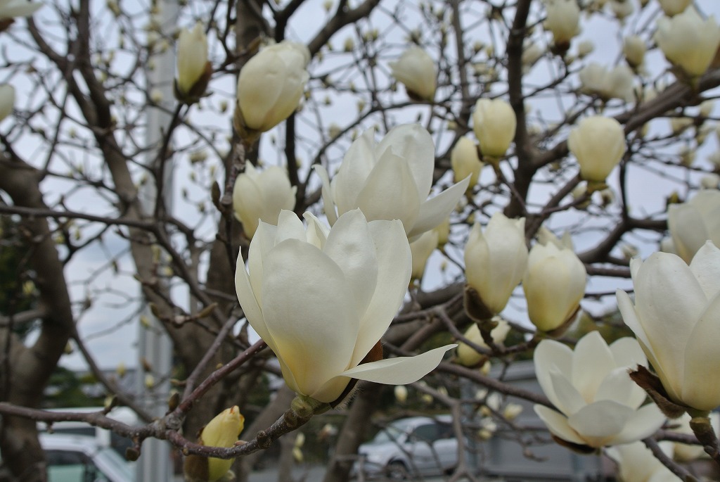少しずつ暖かくなってきましたね。春の訪れを知らせてくれる花、ハクモクレンが咲き始めています。