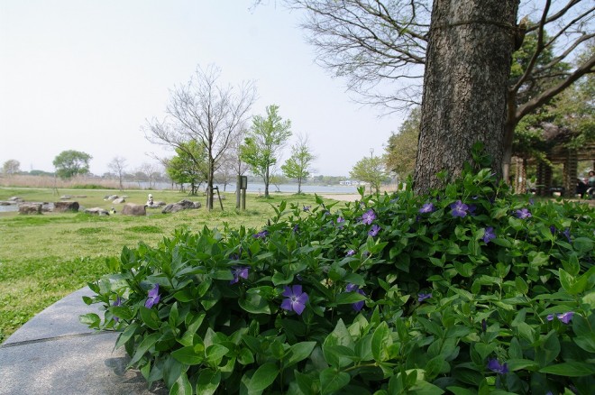 こちら、ツルニチニチソウ。濃い色合いが魅力的です。