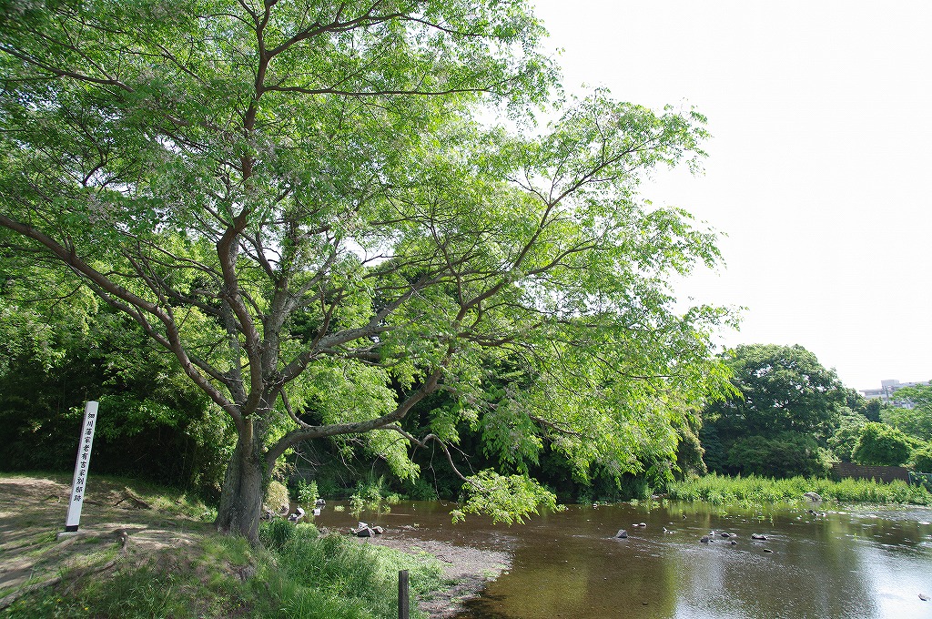 冷たい水が絶え間なく流れる湧水地際にセンダンの大木があり、心地よい日陰を作ってくれています。