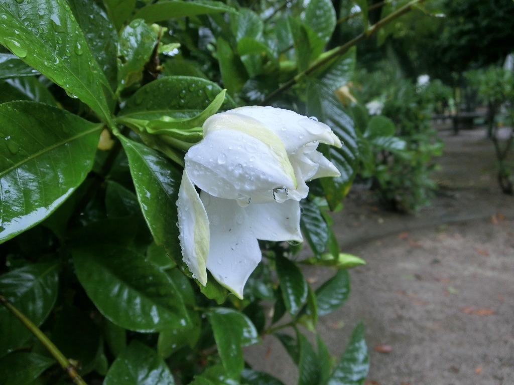 水前寺地区・児童公園の低木・クチナシが開花して、南国風の香りを放っています。