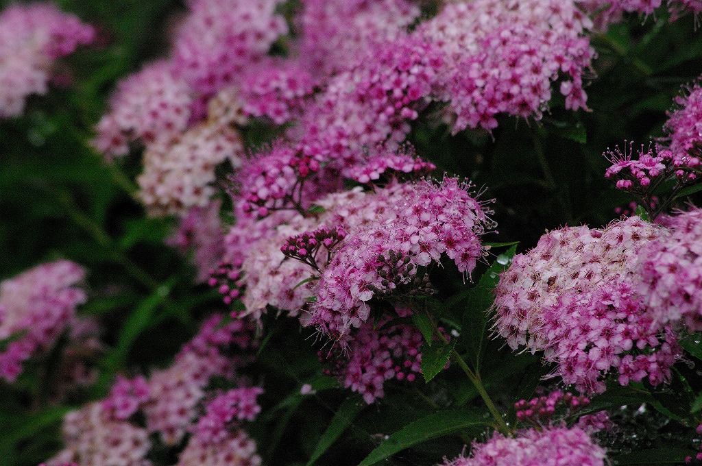 細かな花の集合が目につく、こちらのシモツケは、春先に開花した後、