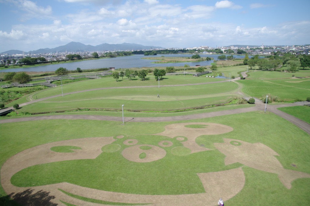 まず、祭りの目玉、くまモンの巨大地上絵。もはや説明は不要でしょう。