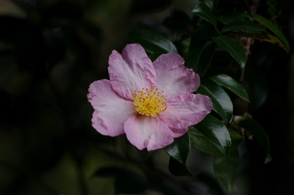 出水地区・旧砂取庭園周囲にあるいくつかのヒゴサザンカが、大型の花弁を咲かせています。