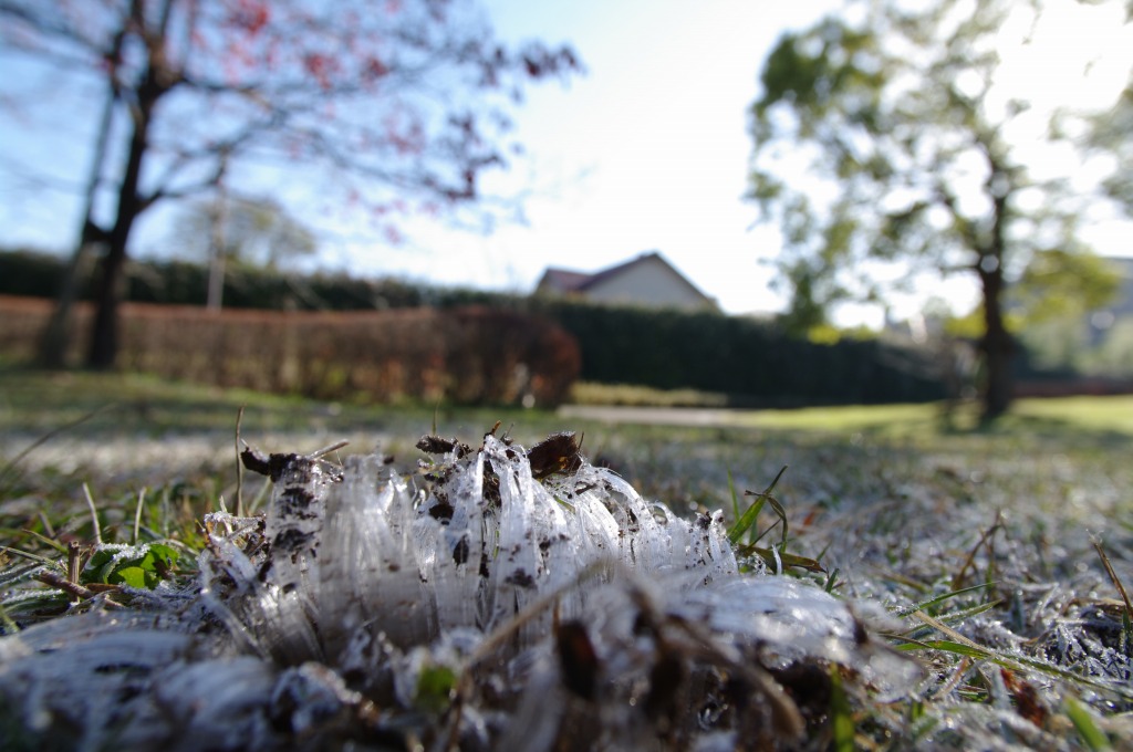 芝生などを歩いているときに、サクサクと小気味良い音がすれば、足元に霜柱がある可能性大。