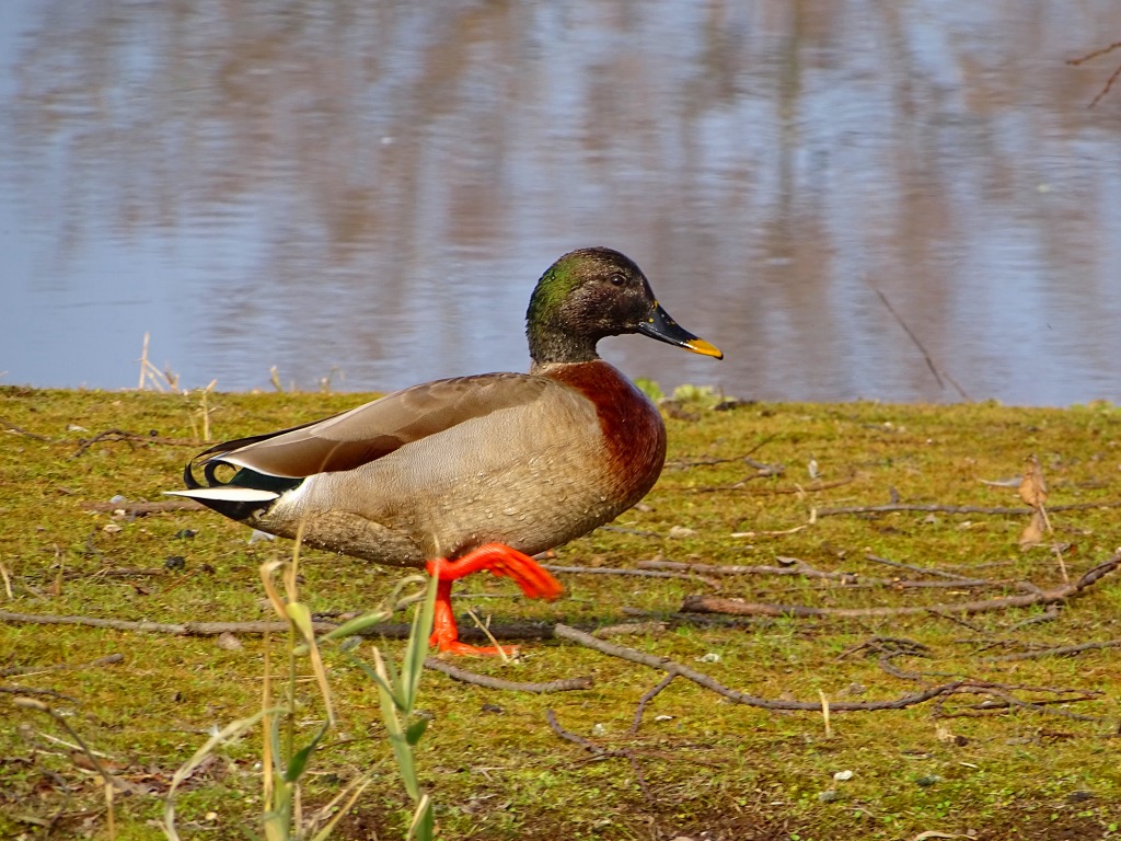 公園内にちょっと見たことのない模様のカモがいました。 どうやら俗称マルガモといわれているカモらしいです。 なぜ俗称かというと、違う種類のカモ(マガモとカルガモ)の交雑種ということらしいです。 つまりマガモの「マ」とカルガモの「ル」をとって「マルガモ」。 確かに言われてみるとマガモの頭の特徴やカルガモのくちばしの特徴が見て取れますね。