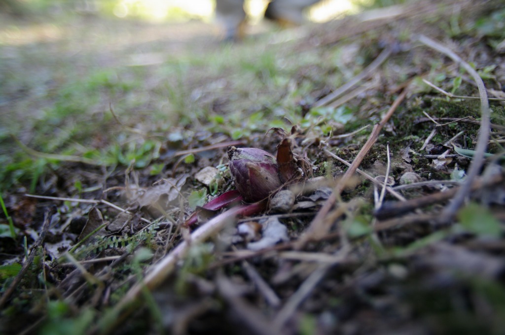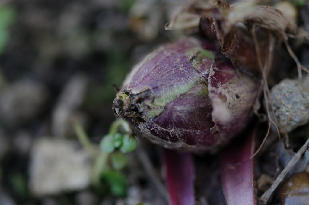 九州・熊本でも霜が降りる時期だからか、ムラサキ色に染まっている外被に包まれています。