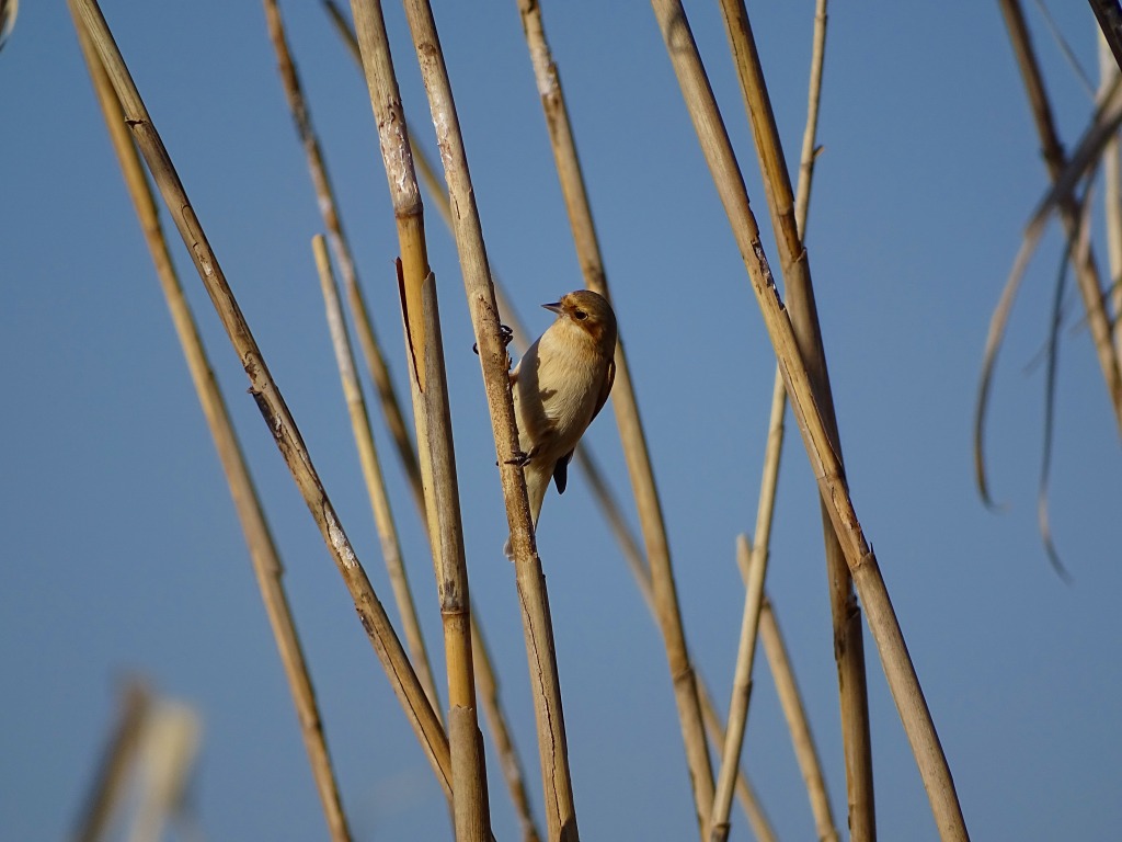十数羽の集団でヨシワラを移動しています。ヨシの中にいる虫をエサとしているようです。