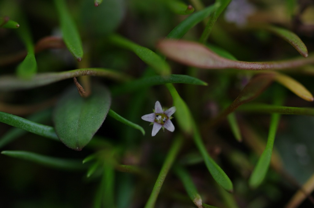 実に小さい白い花、先端がしゃもじのようになった葉っぱが特徴です。
