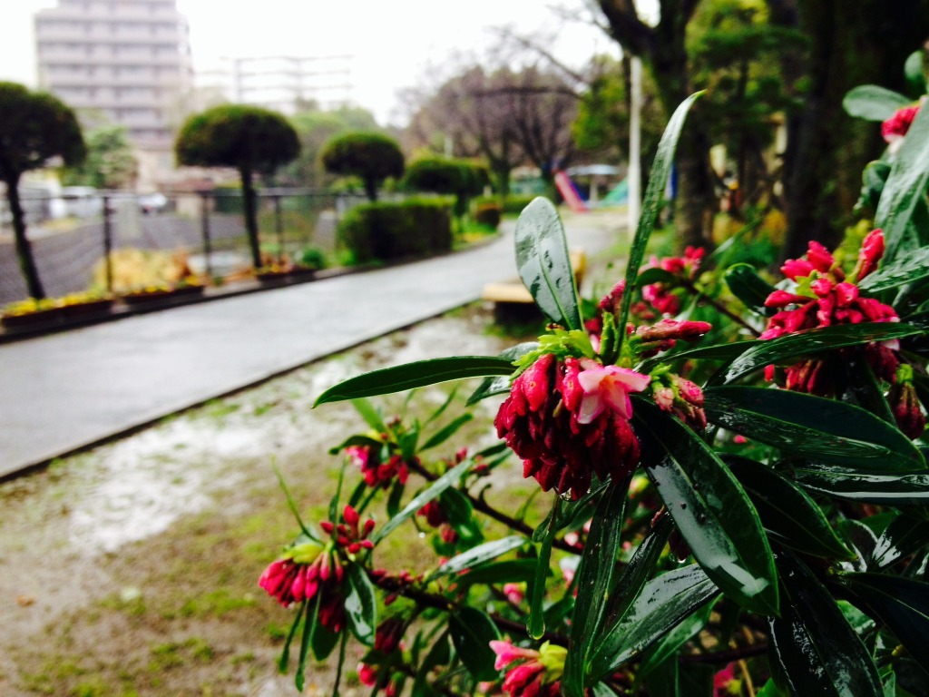 こんにちは、水前寺江津湖公園です。3月に入りましたが引き続き雨を引っ張る天気のなか、ジンチョウゲ科ジンチョウゲが開花していました。場所は水前寺地区・児童公園。