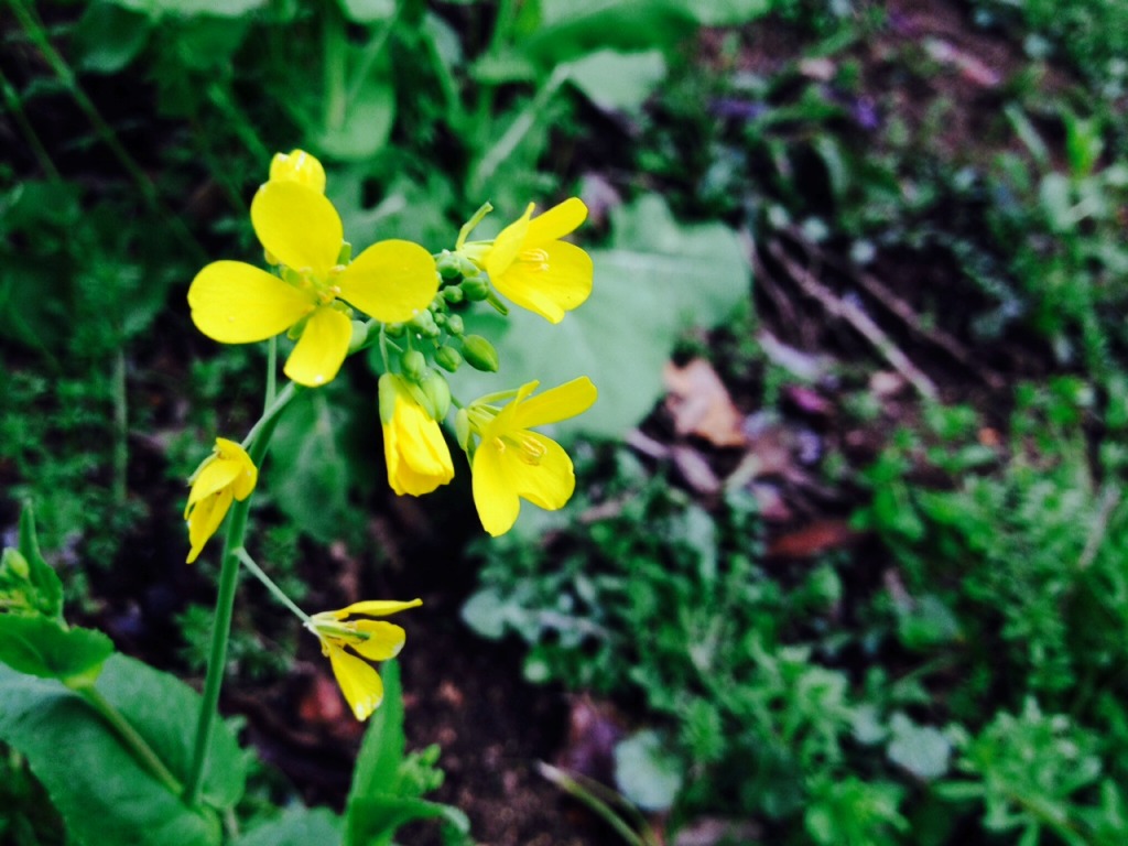 下江津地区・園路沿いに咲いていたアブラナ科セイヨウアブラナ、別名菜の花です。