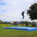 スラックラインは歩く、跳ねる、しゃがむ、技をきめるなどの動きを1本のライン上で行うシンプルなスポーツですが、バランス感覚や体幹を鍛えるなど、様々な効果があります。