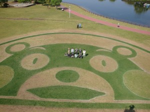 昨秋、広木地区から下江津地区にかけて開催された「江津湖みなも祭り2013」の目玉プログラムであった「くまモンの地上絵」が、このGW期間中に、なななんと上江津湖畔に、改めて出現します。