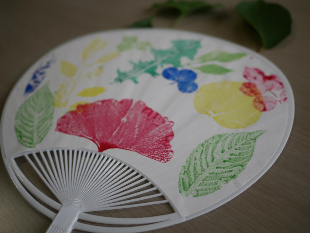 暑い夏がやってきましたね。水前寺江津湖公園では、葉っぱのスタンプを使ってオリジナルのうちわをつくります。また、江津湖の木の名札も一緒につくります。自分だけの特別な作品ができますよ♪