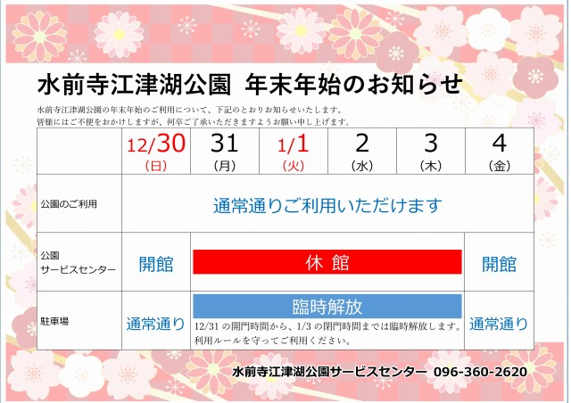 水前寺江津湖公園年末年始のご利用について