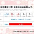 水前寺江津湖公園の年末年始のご利用について、下記のとおりご案内いたします。 皆様にはご不便をおかけしますが、何卒ご了承いただきますようお願い申し上げます。